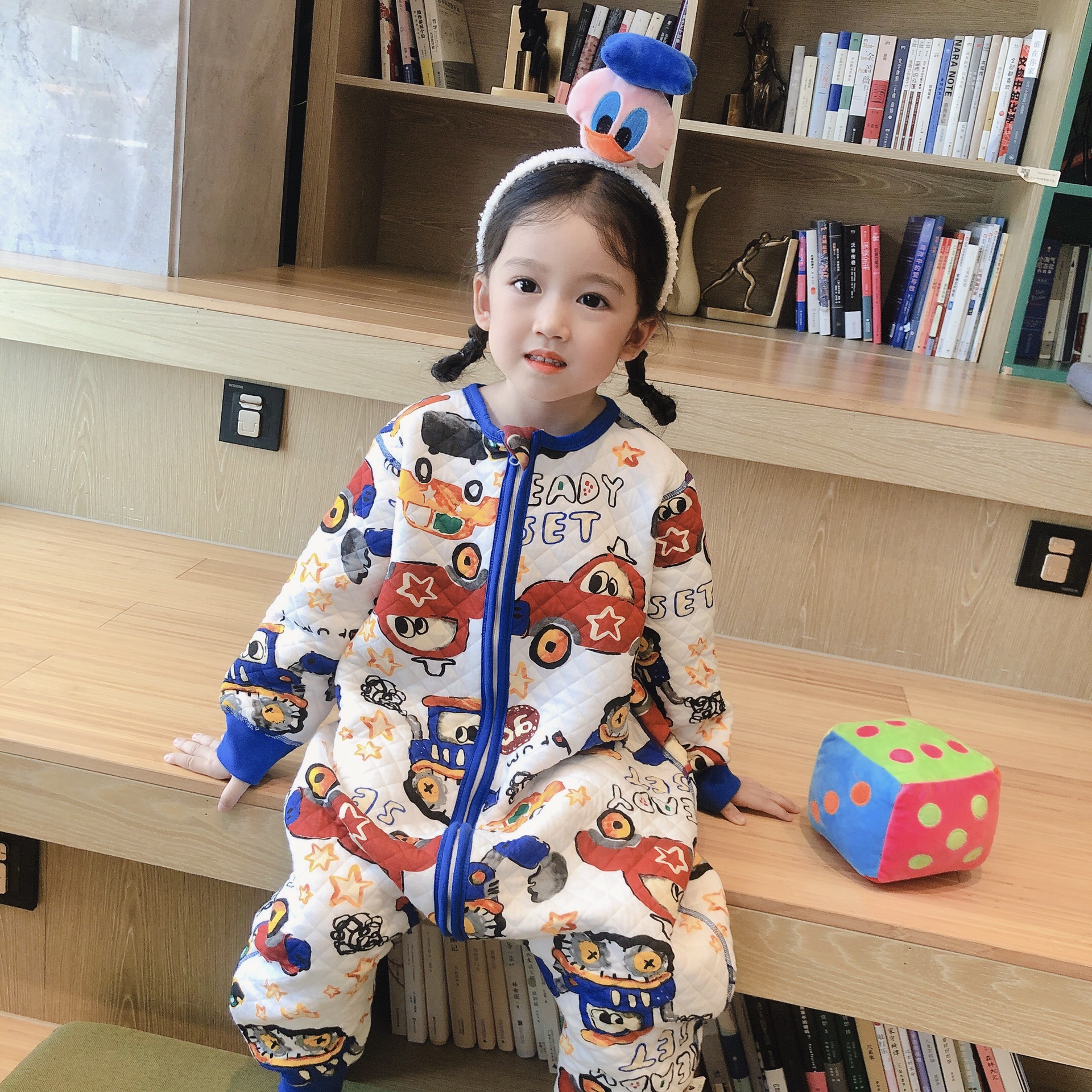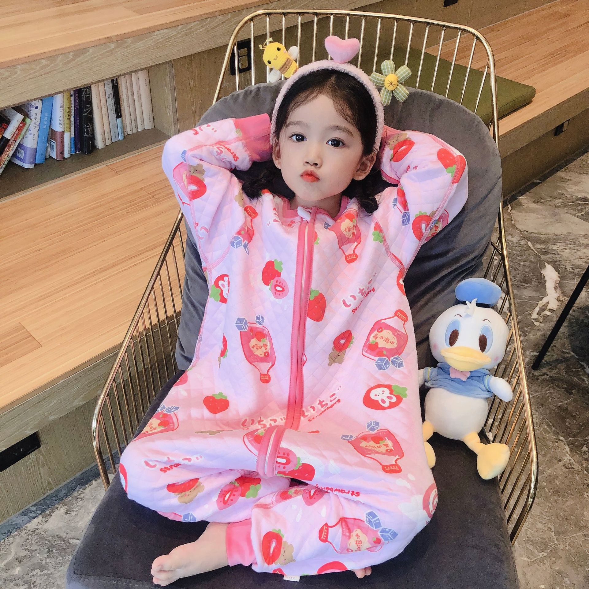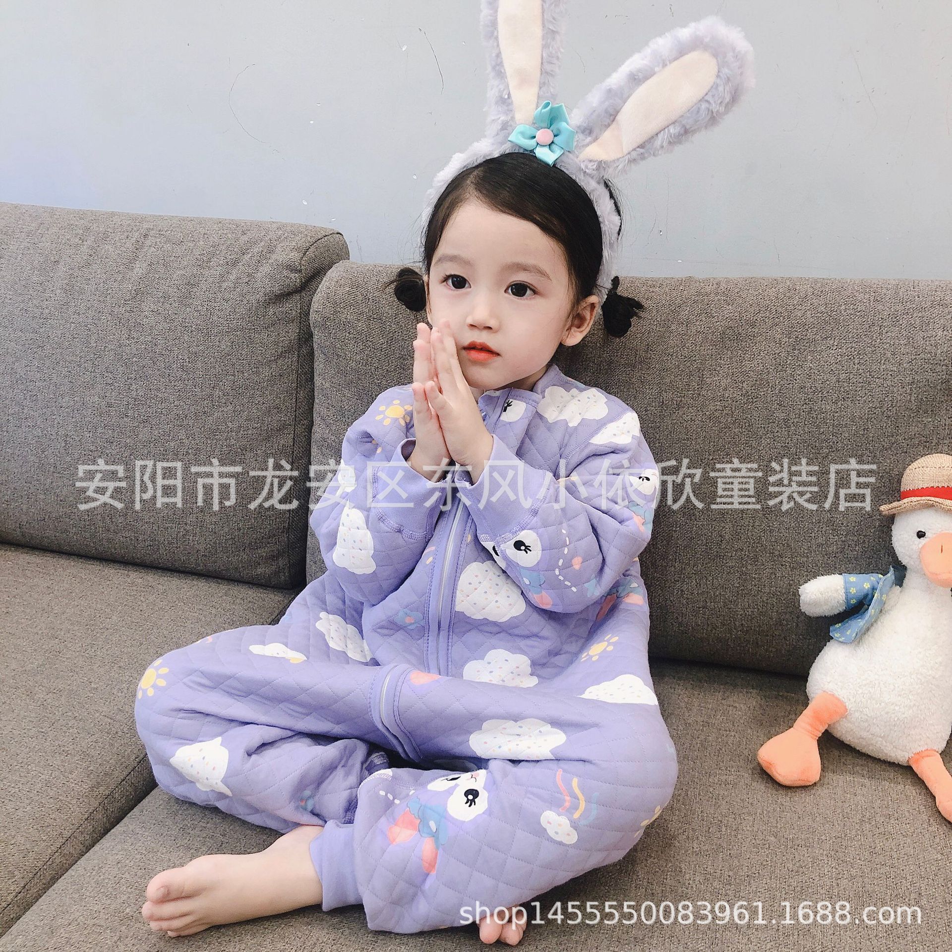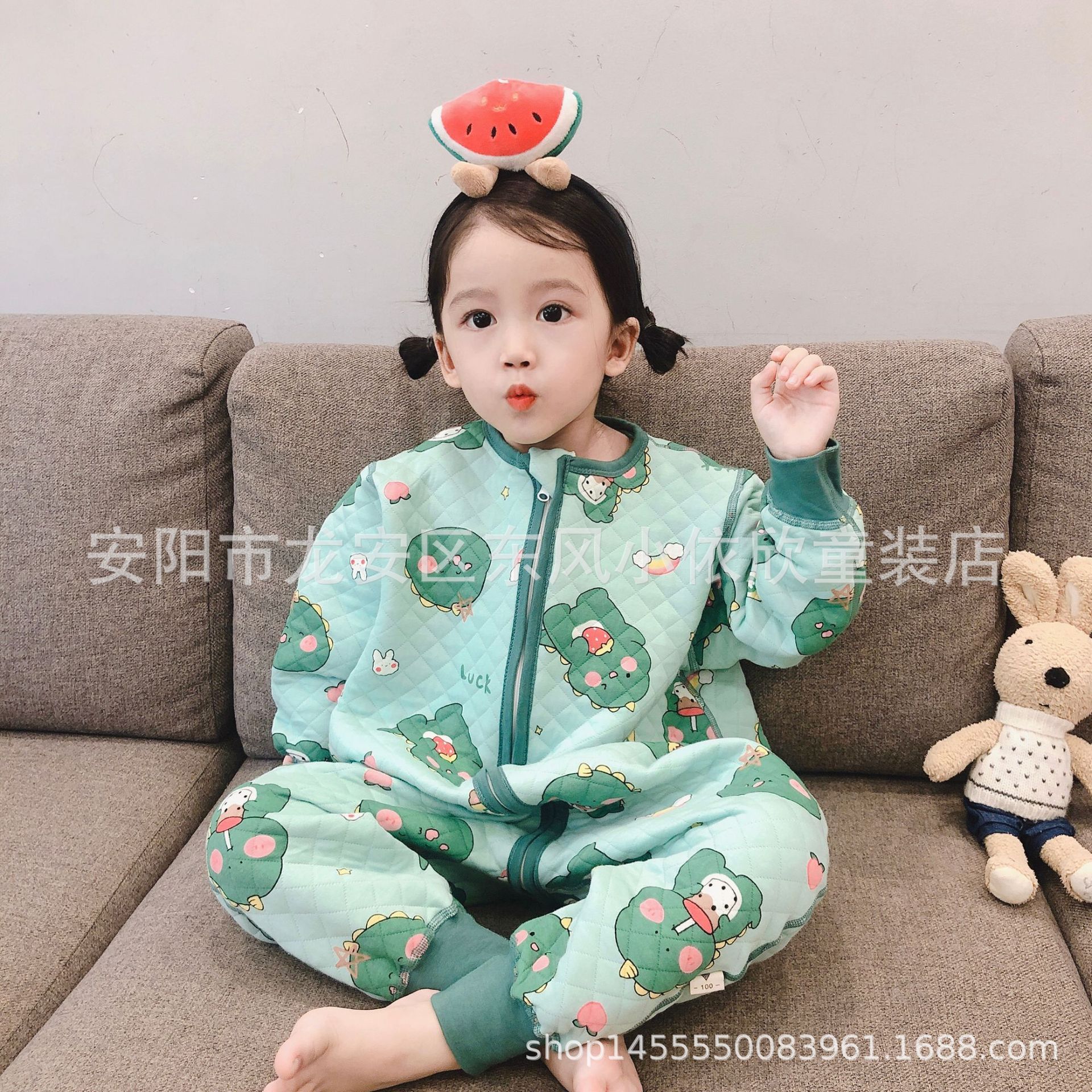 가을과 겨울 새로운 어린이 추적없는 퀼트 슬리핑 백 아기 두꺼운 킥 방지 퀼트 스플릿 레그 파자마