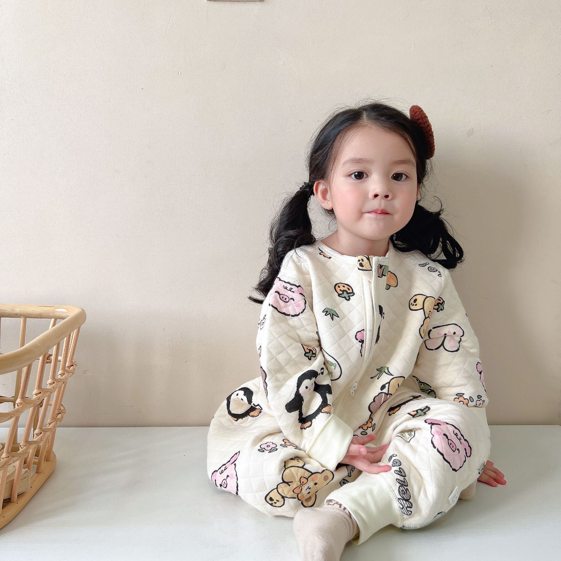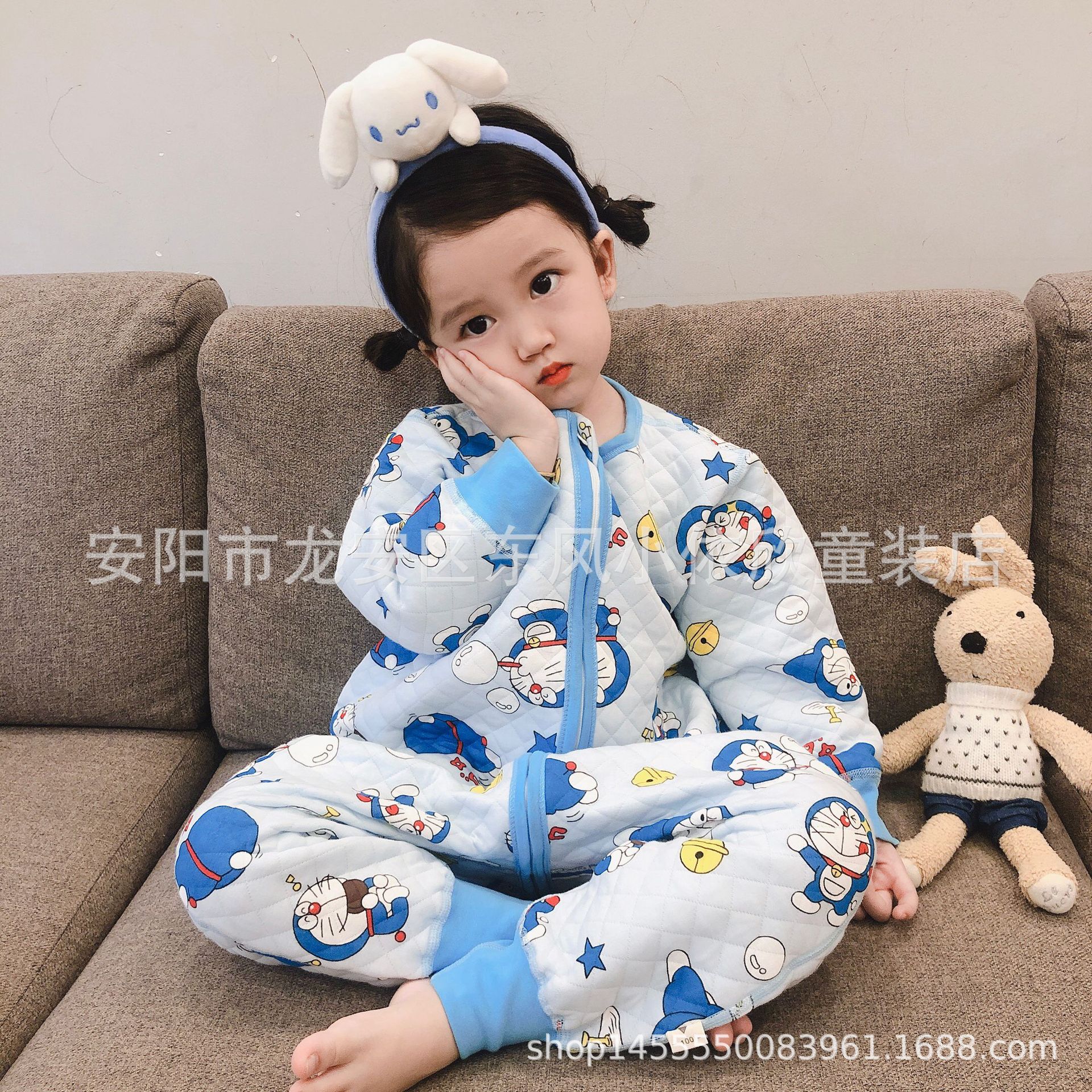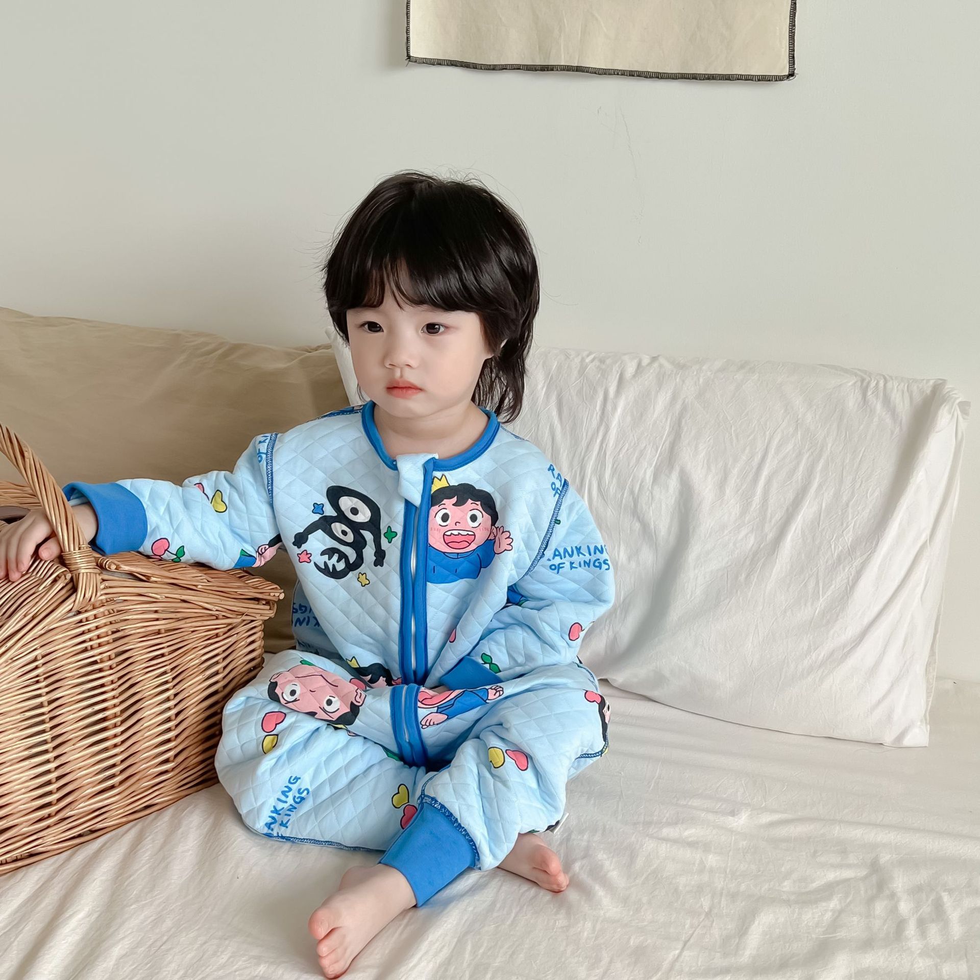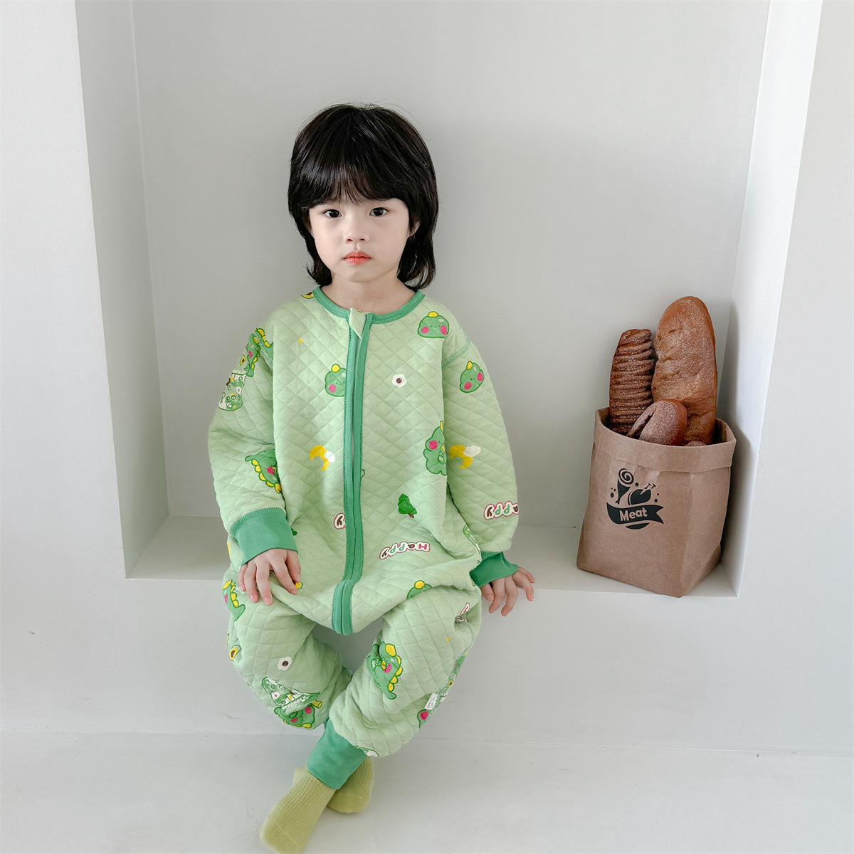 가을과 겨울 새로운 어린이 추적없는 퀼트 슬리핑 백 아기 두꺼운 킥 방지 퀼트 스플릿 레그 파자마