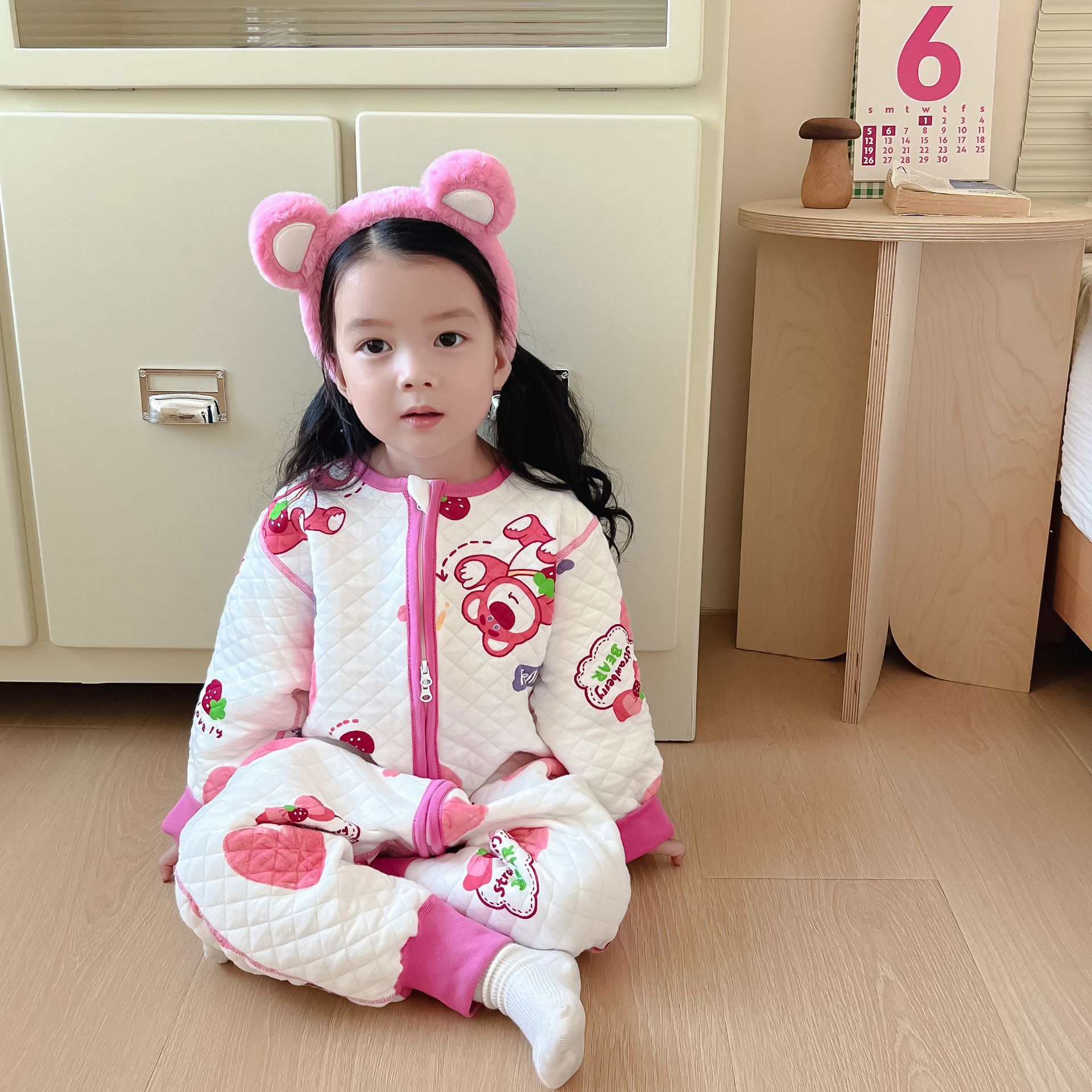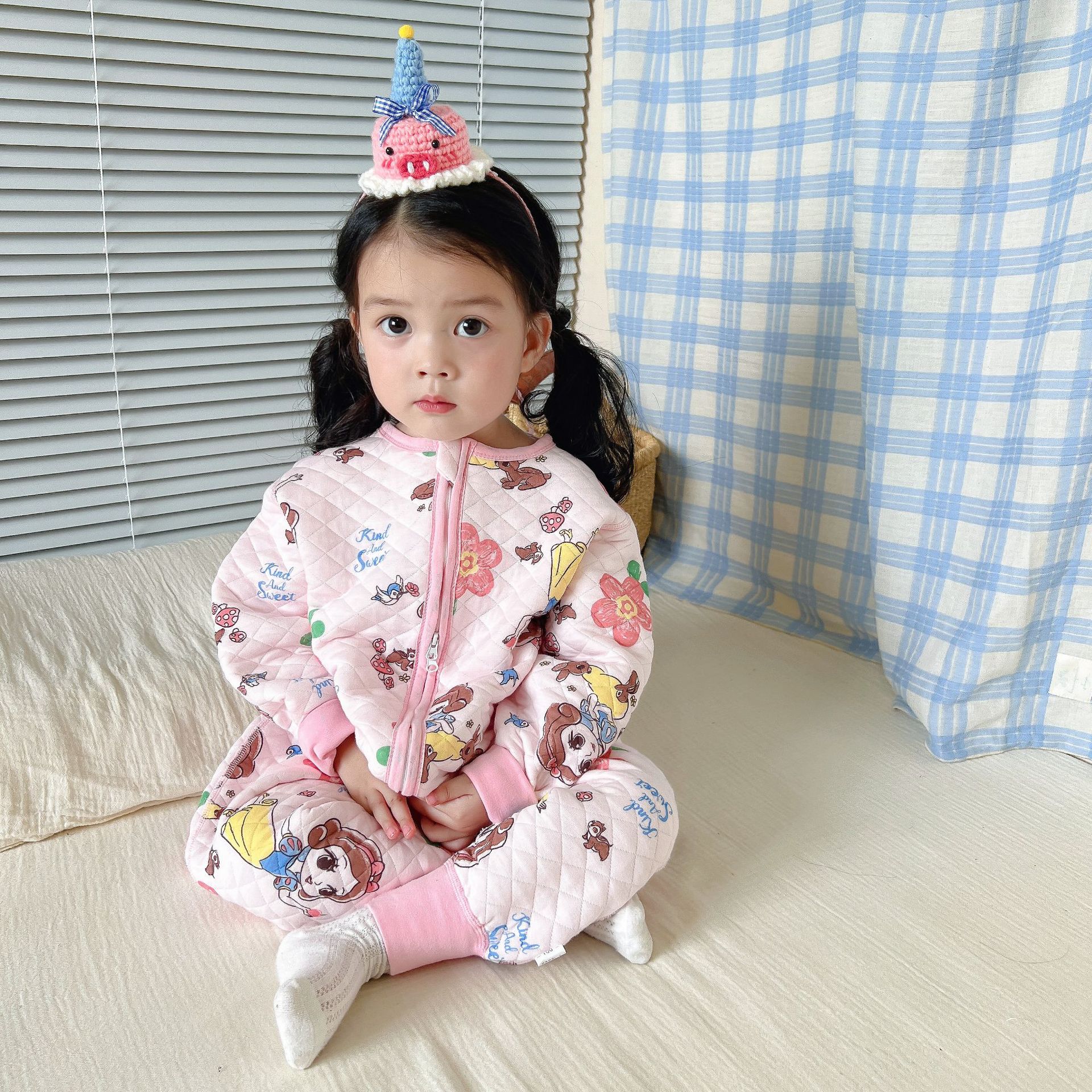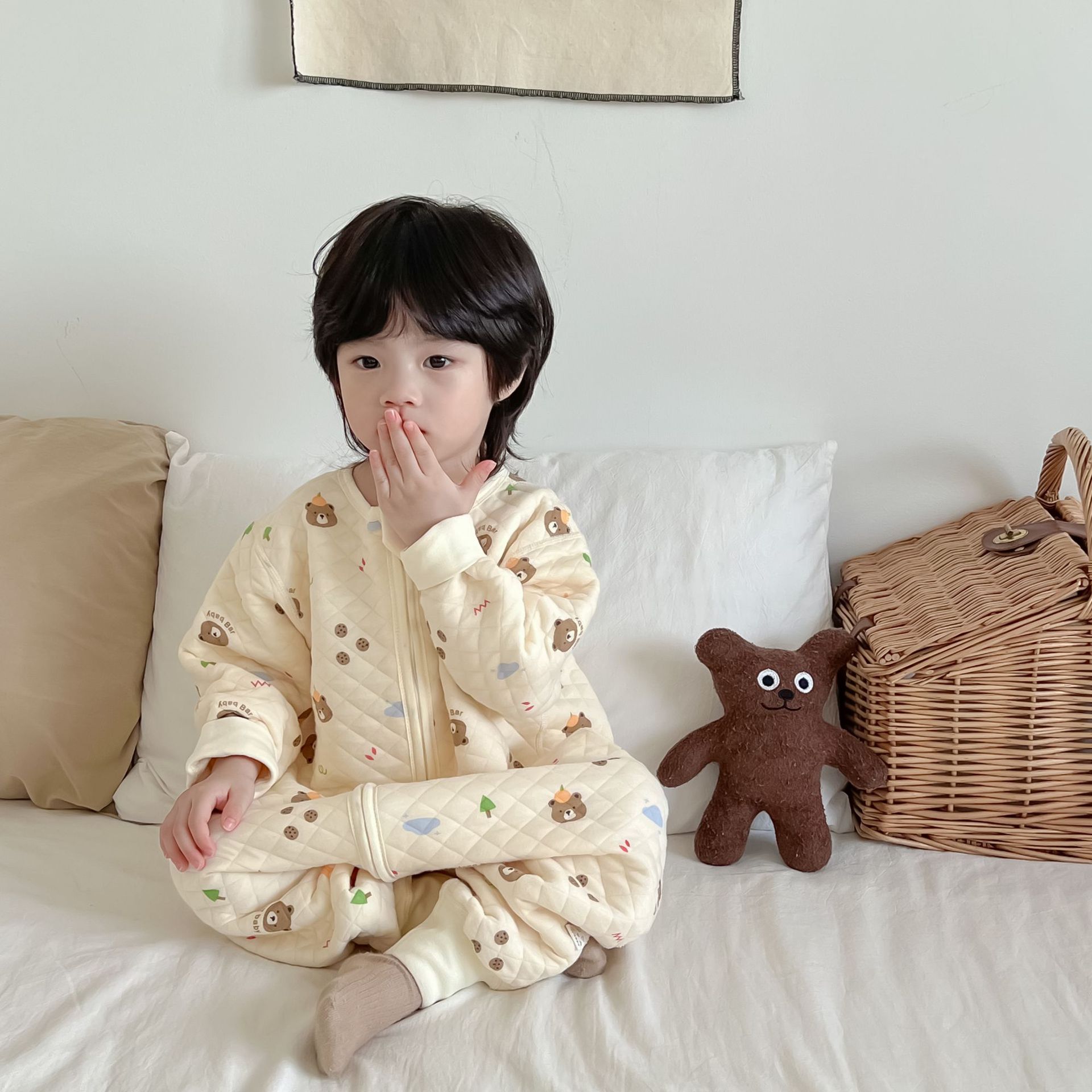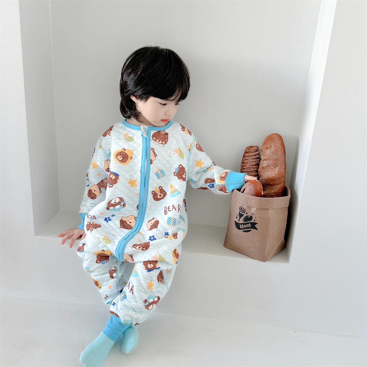 가을과 겨울 새로운 어린이 추적없는 퀼트 슬리핑 백 아기 두꺼운 킥 방지 퀼트 스플릿 레그 파자마