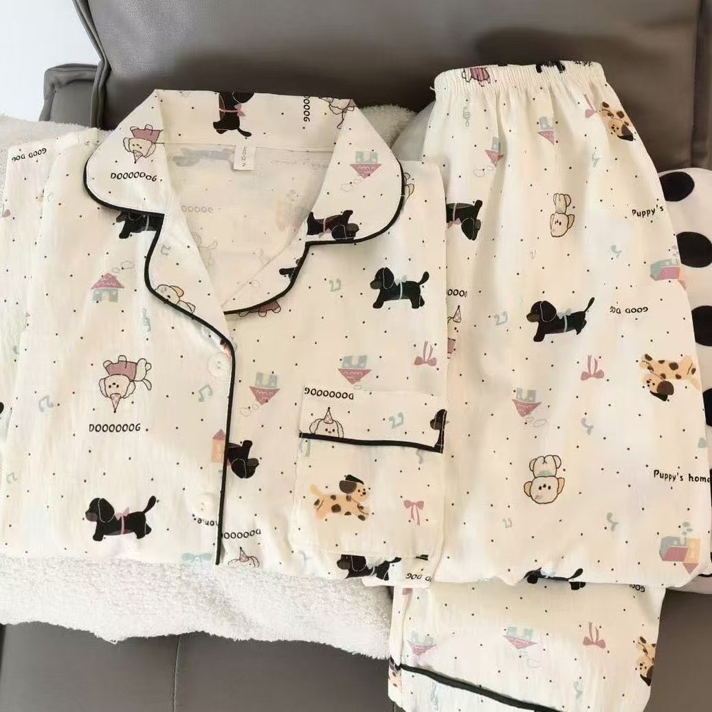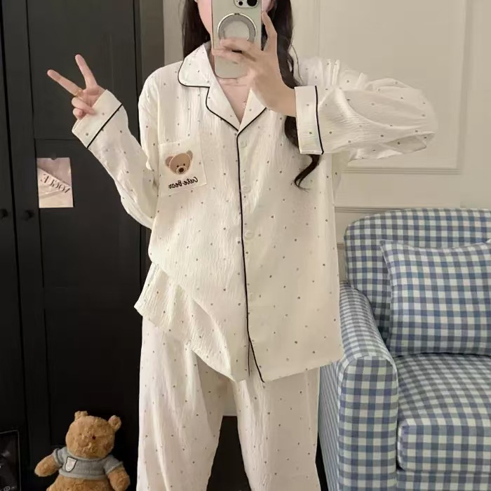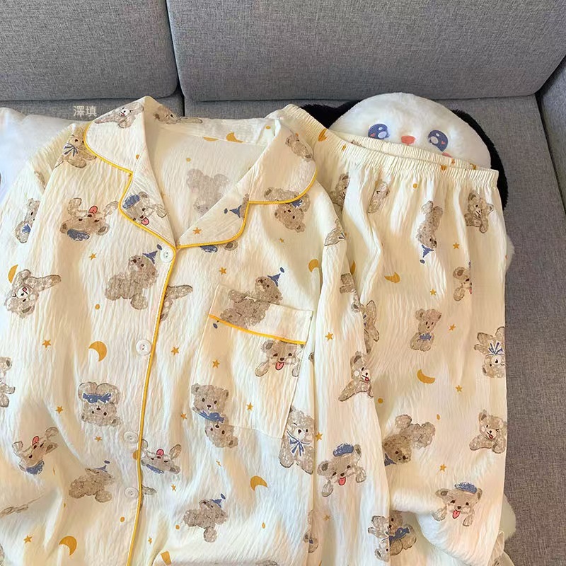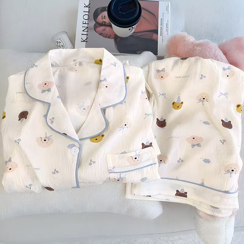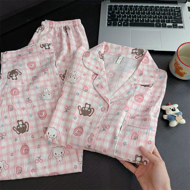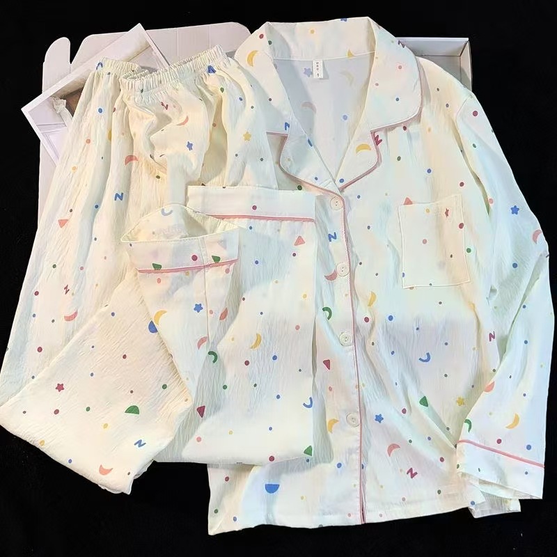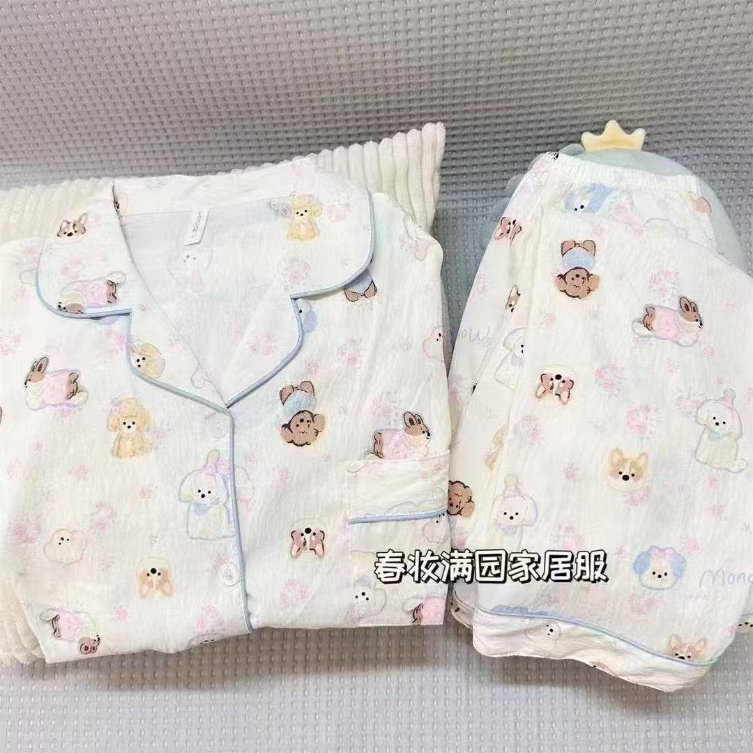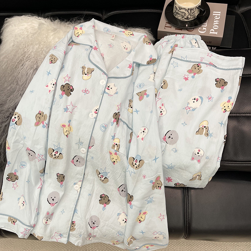 소스 공장 구름 면 파자마 여성의 긴 소매 바지 가디건 가을 학생 홈 의류 세트 온라인 축하 라이브스토어 가기