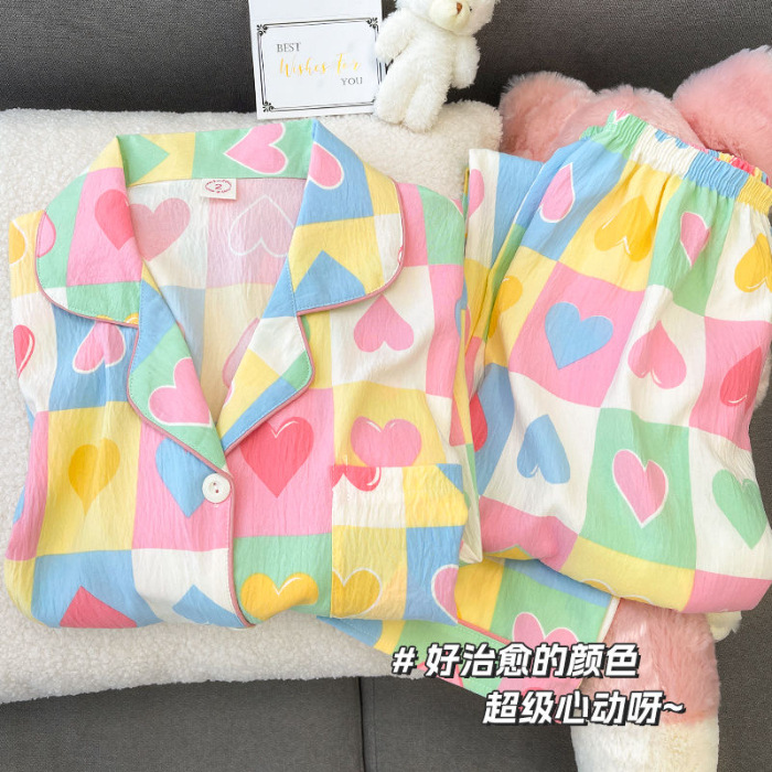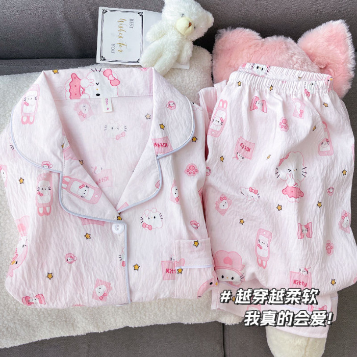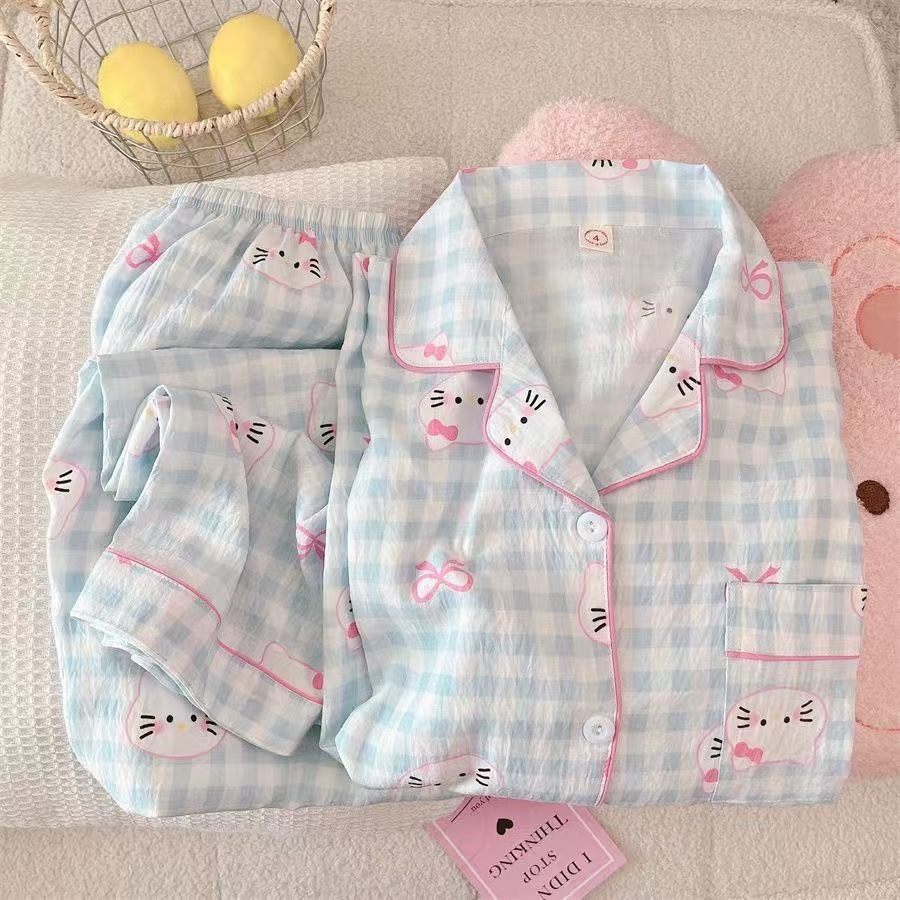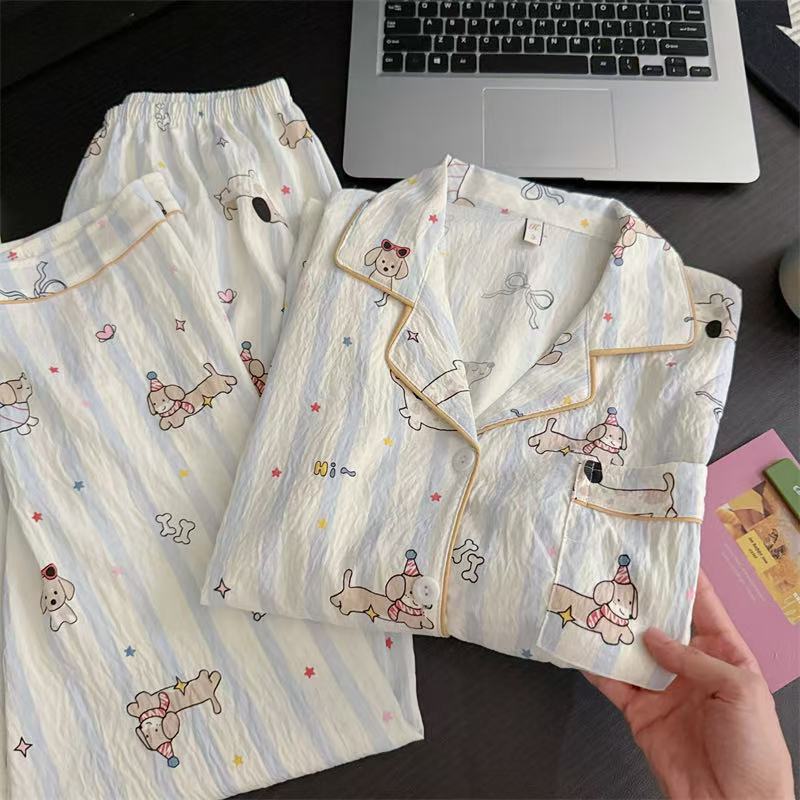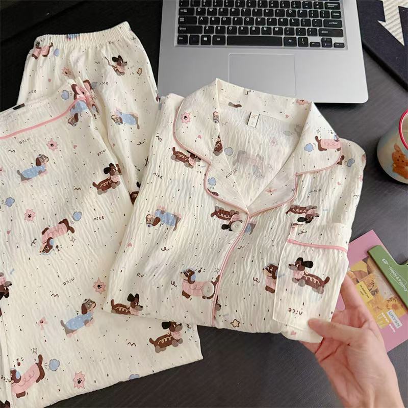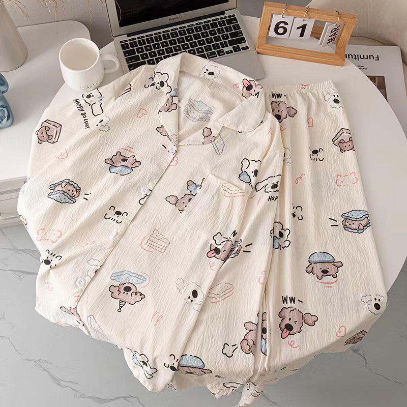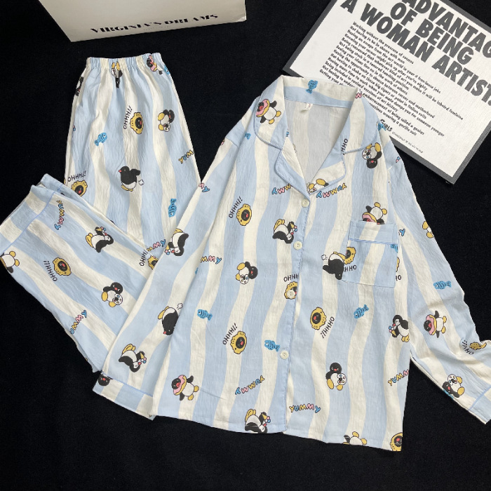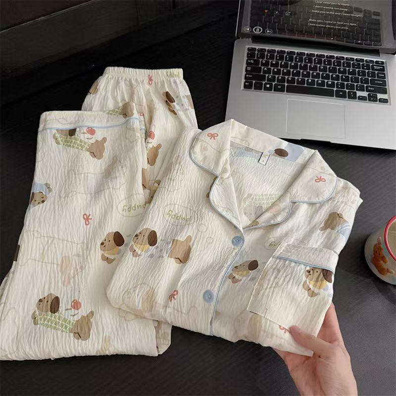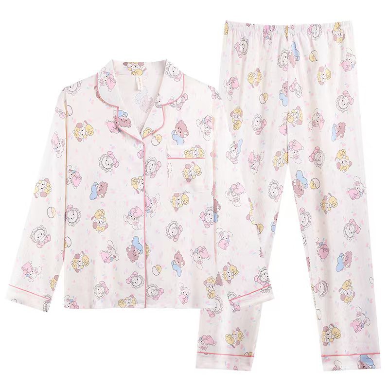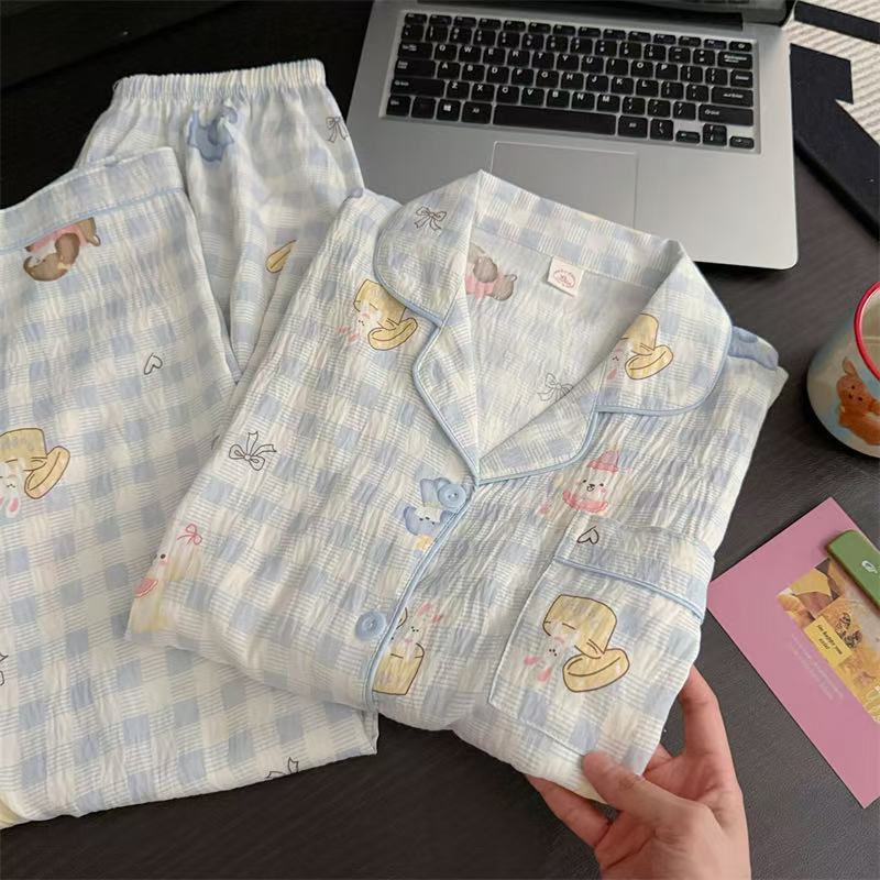 소스 공장 구름 면 파자마 여성의 긴 소매 바지 가디건 가을 학생 홈 의류 세트 온라인 축하 라이브스토어 가기