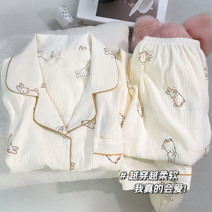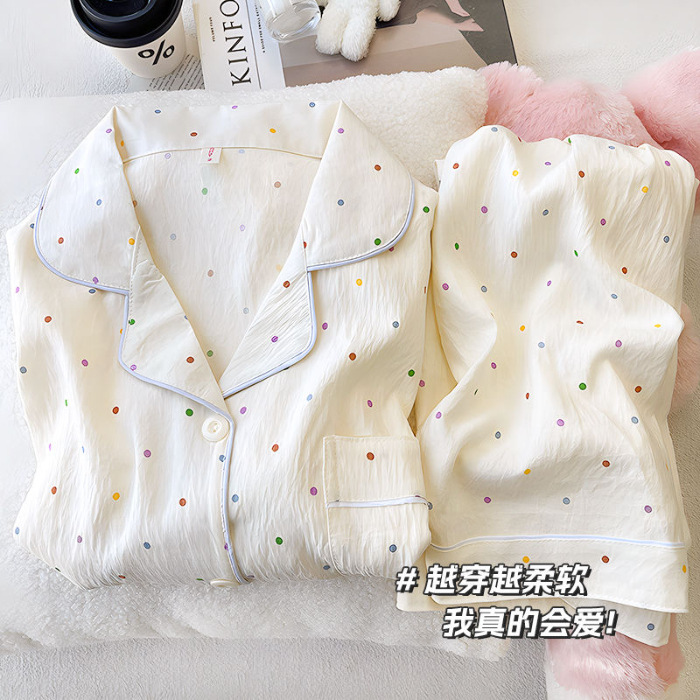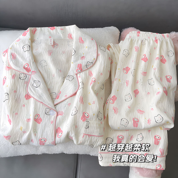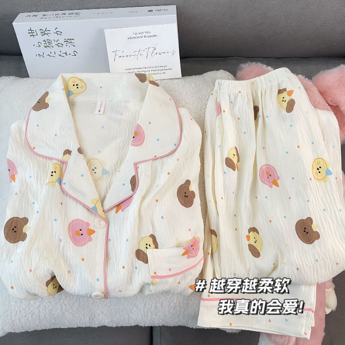 소스 공장 구름 면 파자마 여성의 긴 소매 바지 가디건 가을 학생 홈 의류 세트 온라인 축하 라이브