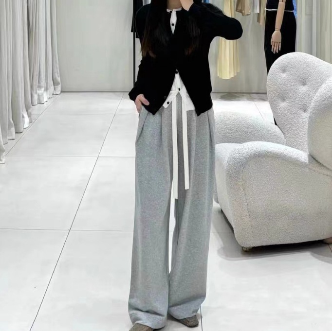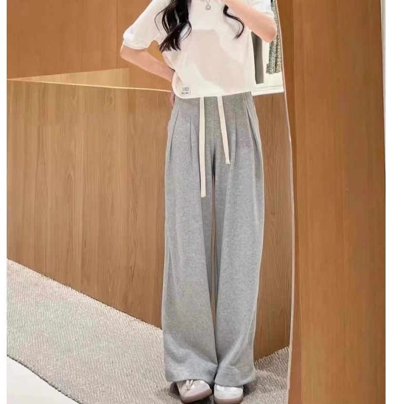 ED2024 가을과 겨울 새로운 패션 올 매치 느슨한 드로 스트링 탄성 허리 와이드 다리 캐주얼 바지 바지