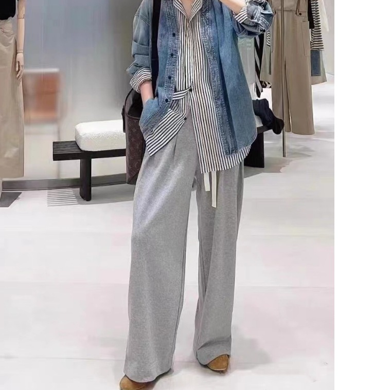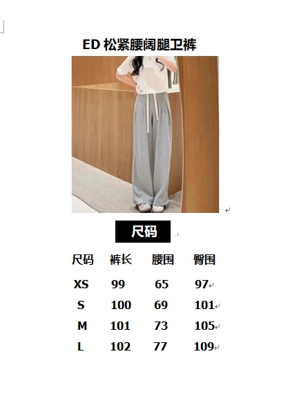 ED2024 가을과 겨울 새로운 패션 올 매치 느슨한 드로 스트링 탄성 허리 와이드 다리 캐주얼 바지 바지스토어 가기