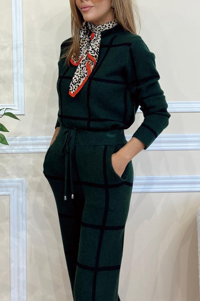유럽과 미국 여성의 2024 가을과 겨울 대외 무역 새로운 아마존 AliExpress 긴팔 바지 패션 체크 무늬 투피스 세트