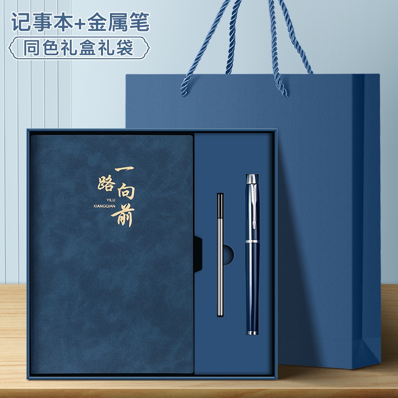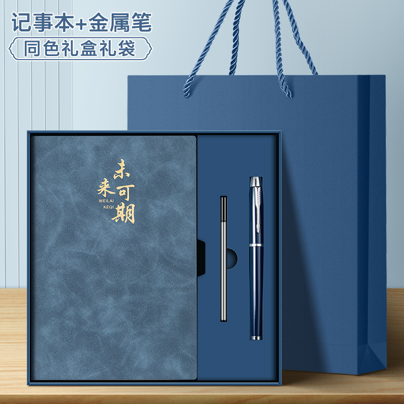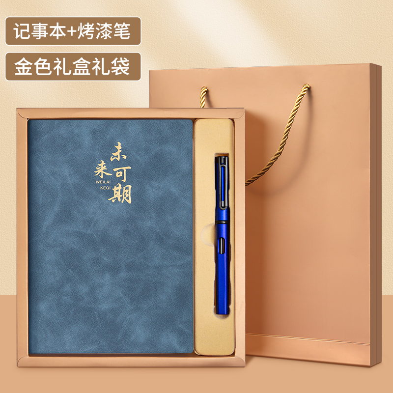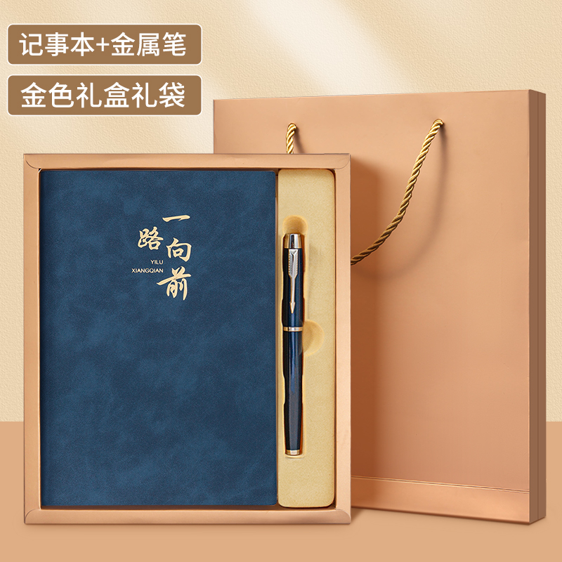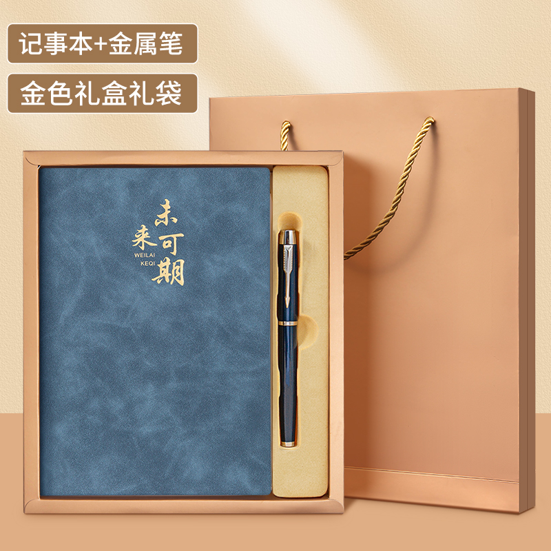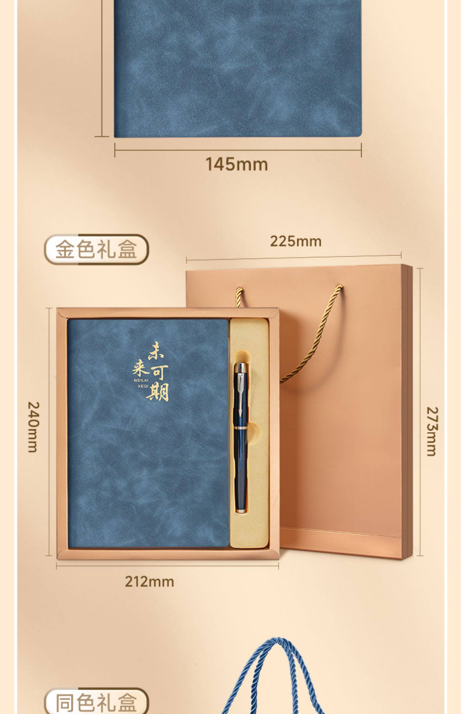• 네이비 블루 A5 부드러운 가죽 + 골드 박스 + 메탈 펜 (선물 가방) [향후 유망]