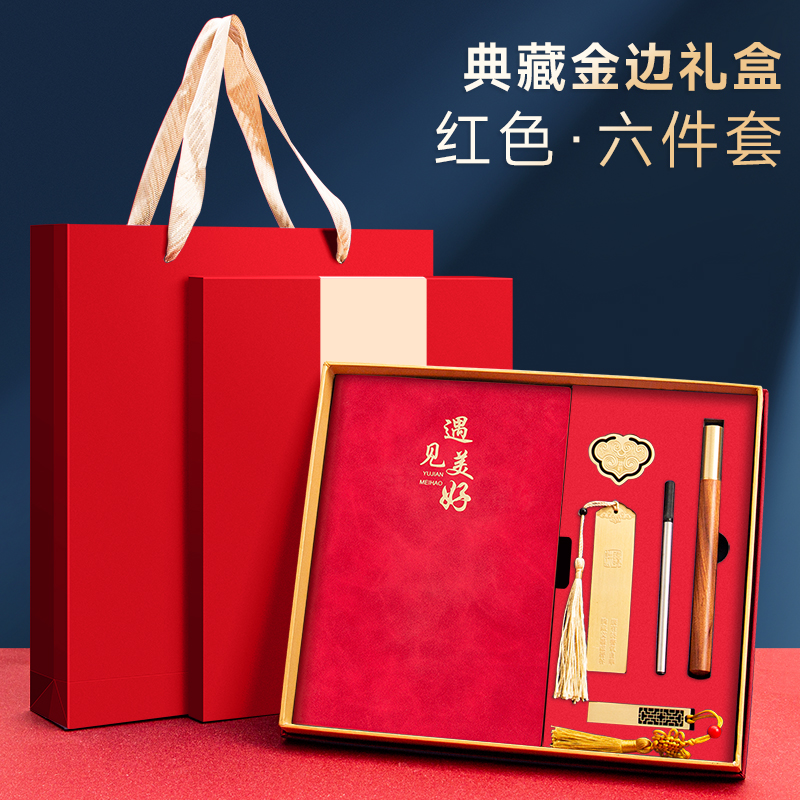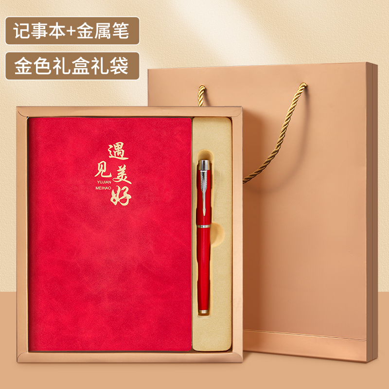 • 레드 A5 소프트 가죽 + 골드 박스 + 메탈 펜 (선물 가방) [미인을 만나다]