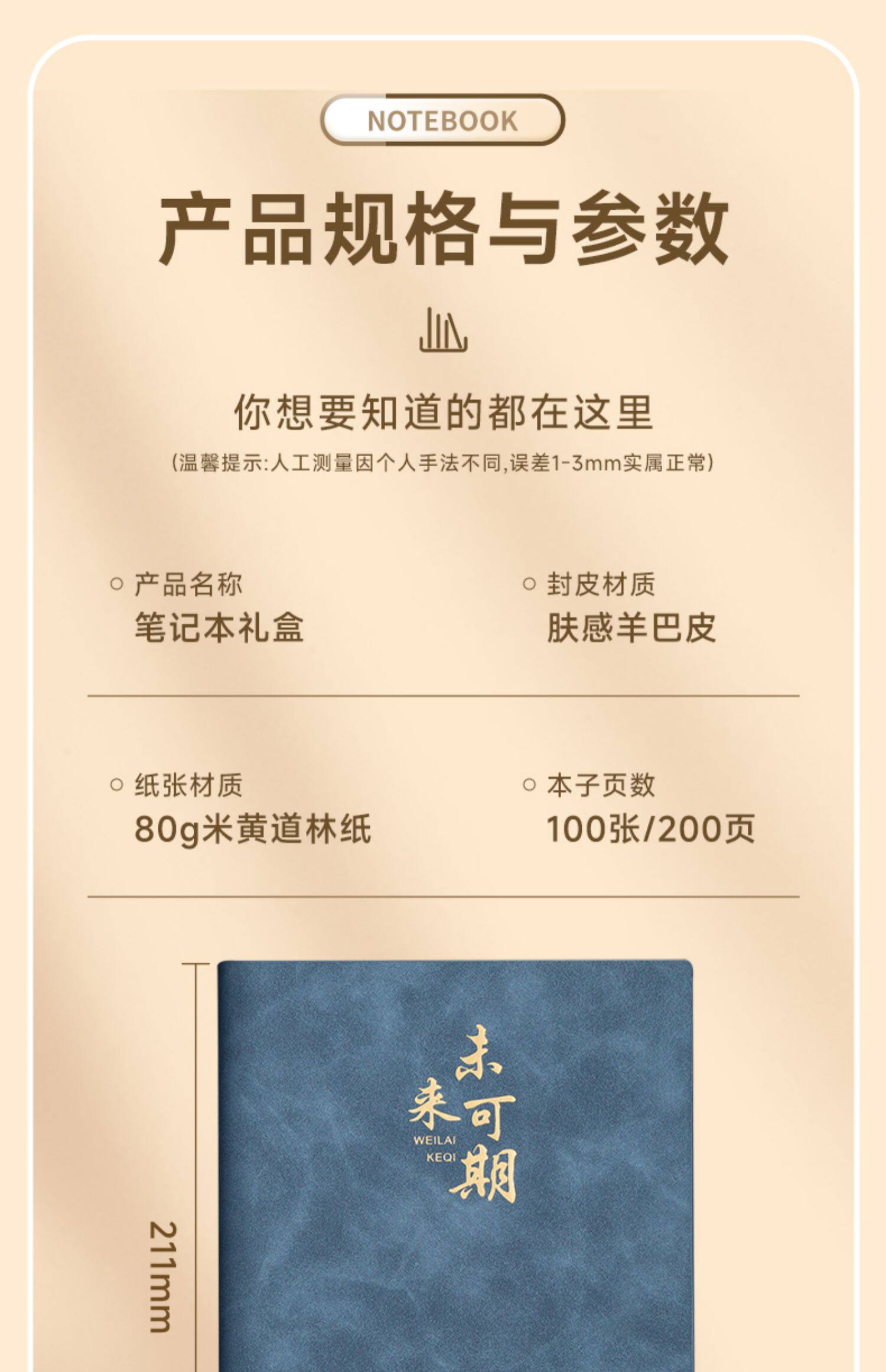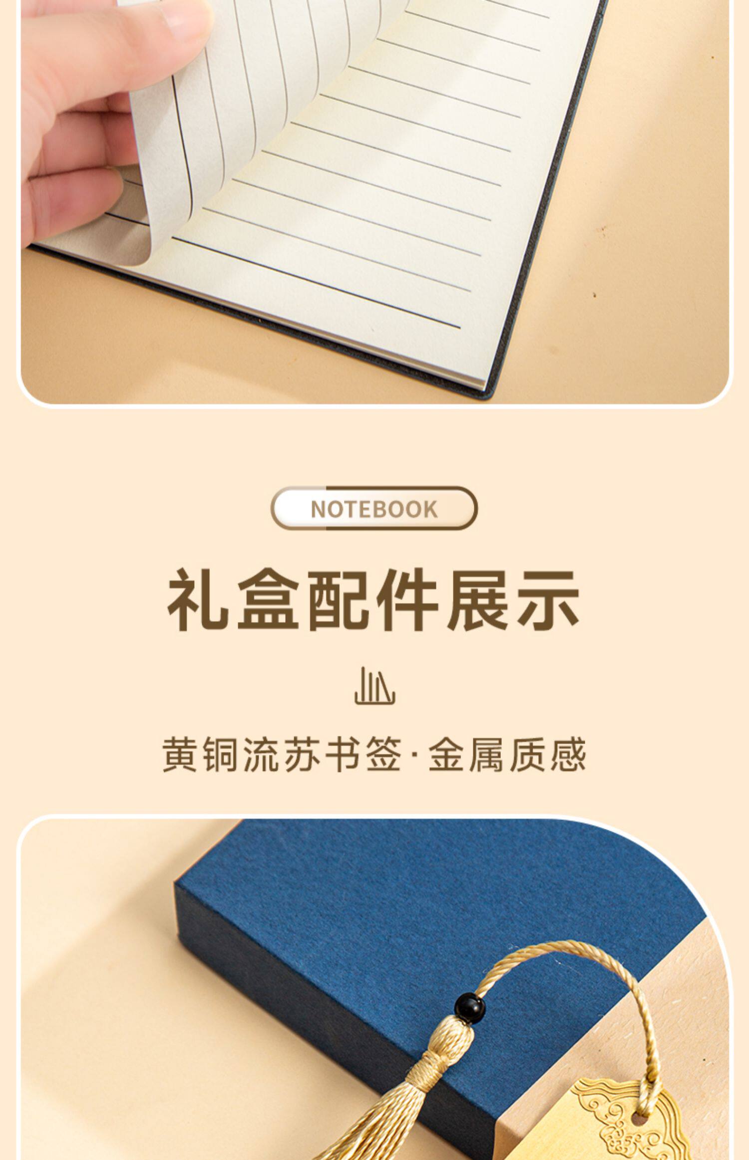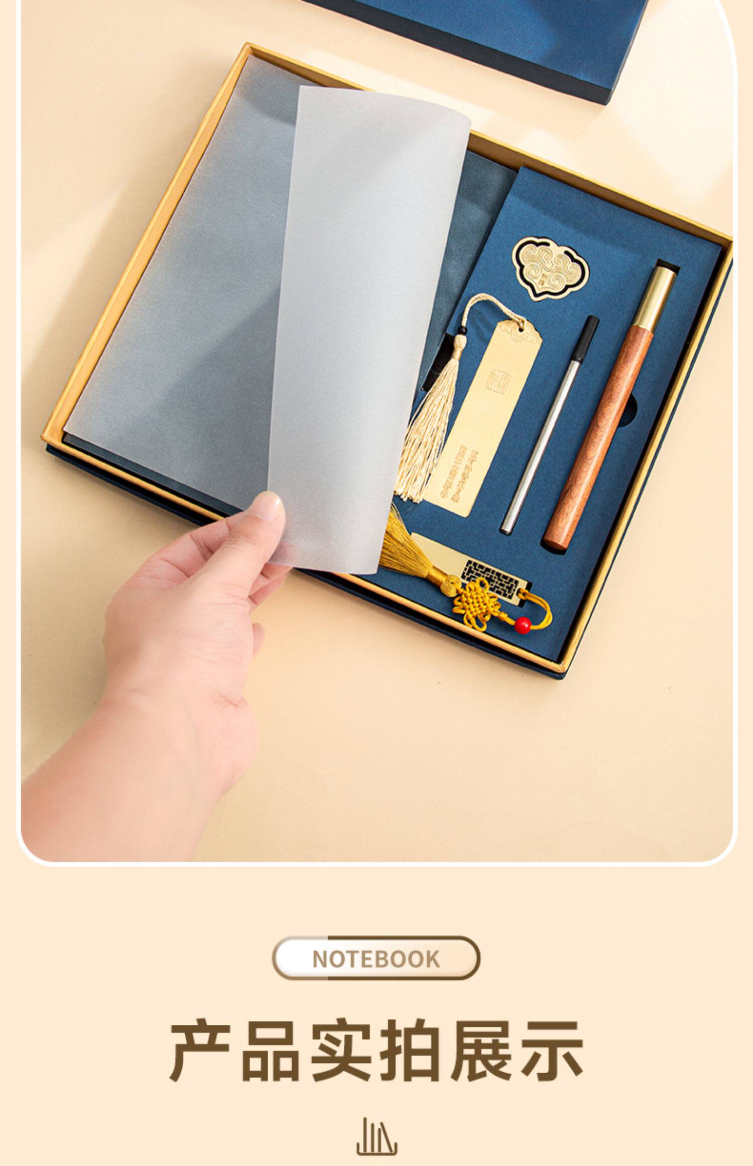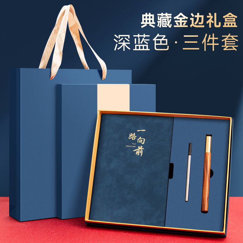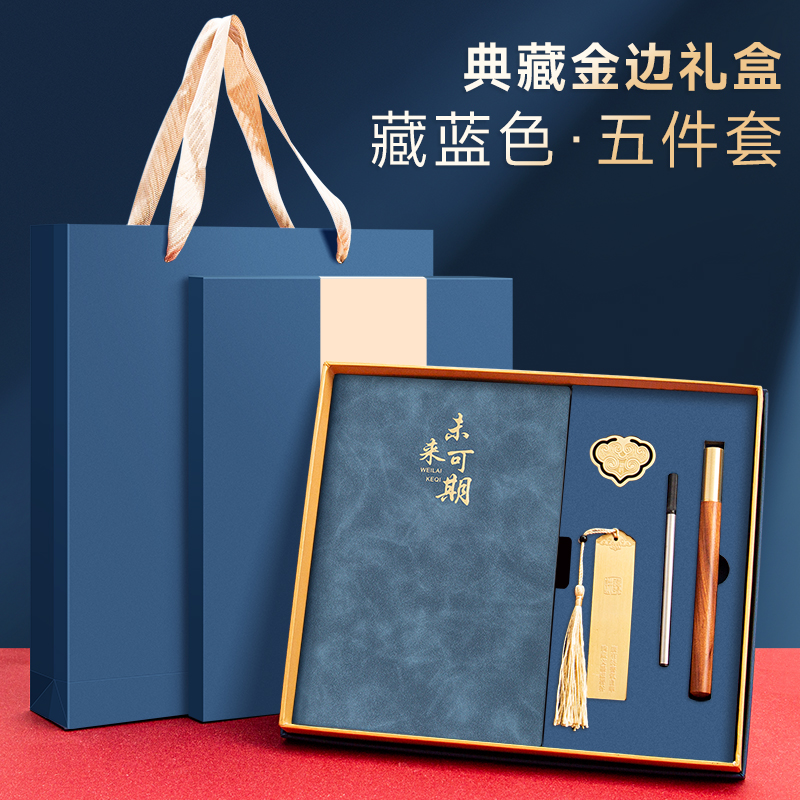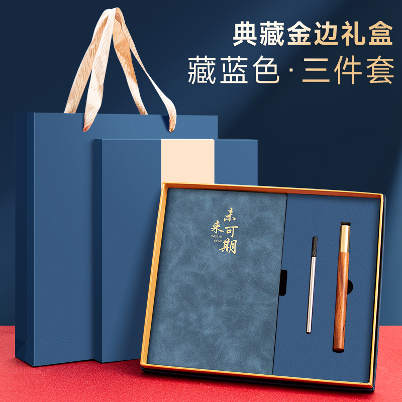 • [유망한 미래] A5 네이비 블루 - 양가죽 모델 (노트북 + 나무 펜 + 리필 + 책갈피 + U 디스크 + 컬렉션 선물 상자 + 선물 가방)