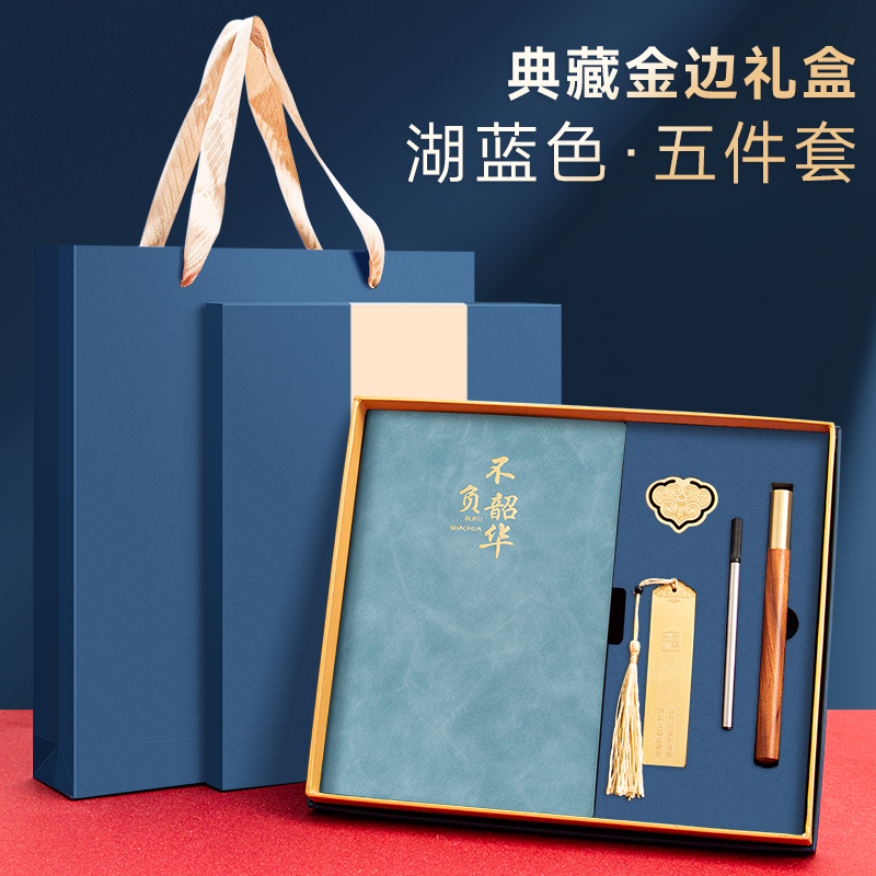 • [소화에 부응] A5 레이크 블루 - 양가죽 모델 (노트북 + 나무 펜 + 리필 + 책갈피 + U 디스크 + 컬렉션 선물 상자 + 선물 가방)