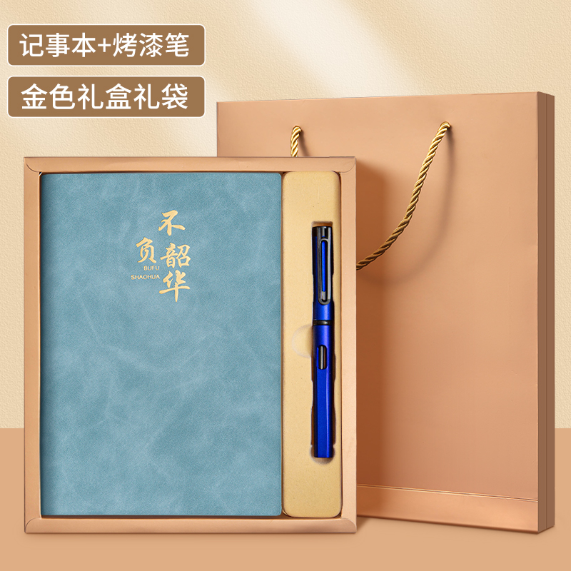 • 레이크 블루 A5 부드러운 가죽 + 골드 박스 + 메탈 펜 (선물 가방) [소화에 부응]