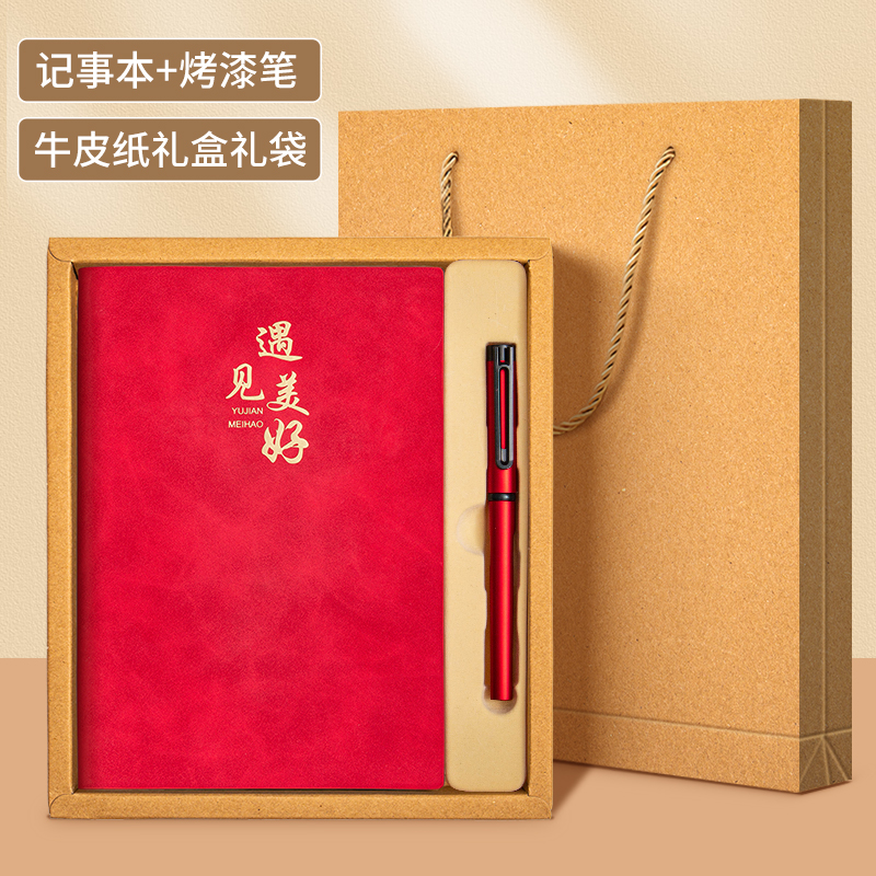 • 레드 A5 부드러운 가죽 + 크라프트지 선물 상자 + 펜 01개(선물 가방) [미인을 만나다]
