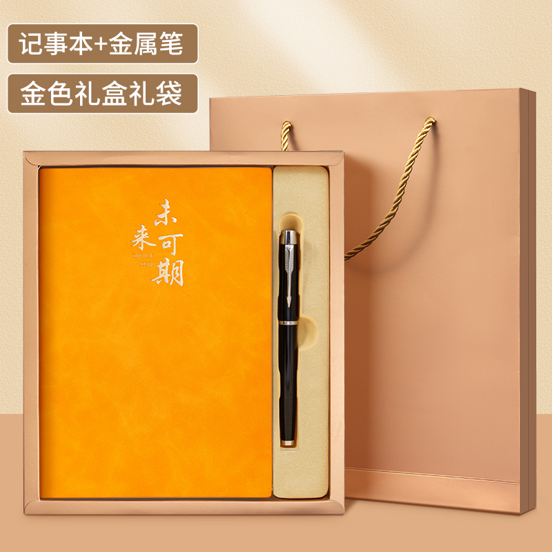 • 노란색 A5 부드러운 가죽 + 금 상자 + 금속 펜 (선물 가방) [향후 유망]