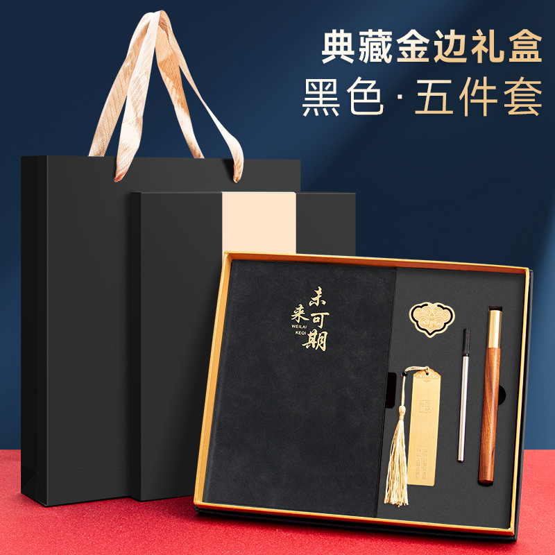 • [유망한 미래] A5 블랙 - 양가죽 모델 (노트북 + 나무 펜 + 리필 + 책갈피 + U 디스크 + 컬렉션 선물 상자 + 선물 가방)