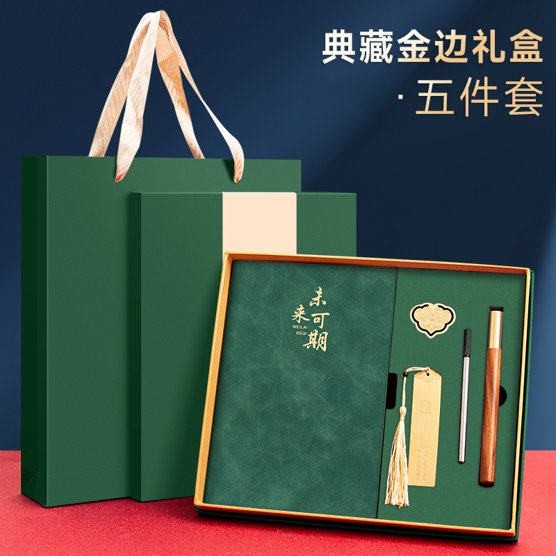 • [유망한 미래] A5 짙은 녹색 - 양가죽 모델 (노트북 + 나무 펜 + 리필 + 책갈피 + U 디스크 + 컬렉션 선물 상자 + 선물 가방)