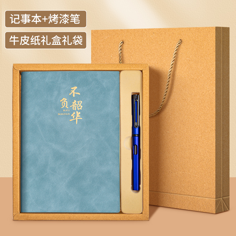 • 레이크 블루 A5 부드러운 가죽 + 크라프트지 선물 상자 + 펜 01개(선물 가방) [소풍에 부응]