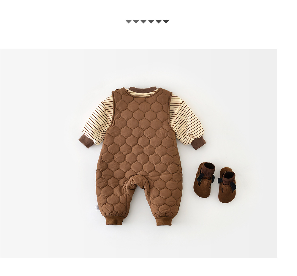 2025秋季新款儿童卡通连身衣 新生儿条纹脱卸领长袖爬服53566
