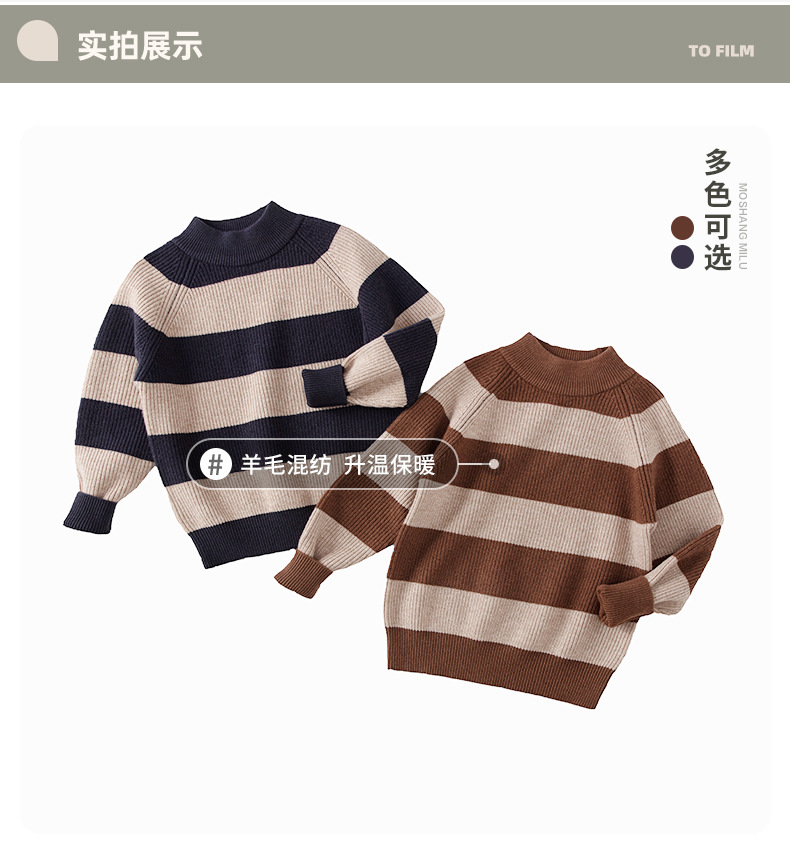 가을 겨울 아동용 스웨터, 한국 스타일의 새로운 줄무늬 아동복, 남아 및 여아용 니트 스웨터, 중소 아동용 풀오버 스웨터스토어 가기