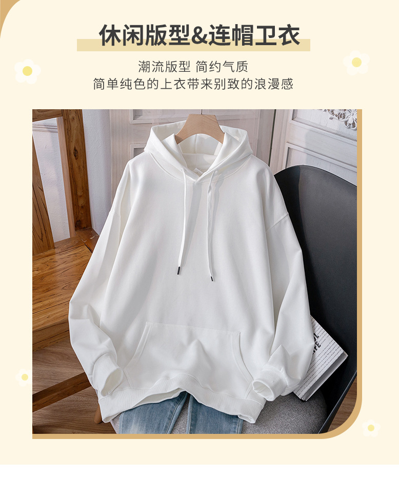 Ins 슈퍼 인기 솔리드 컬러 후드 스웨트 여자 봄과 가을 새로운 도착 한국 스타일 남녀 올 매치 보켓 루즈 탑스토어 가기