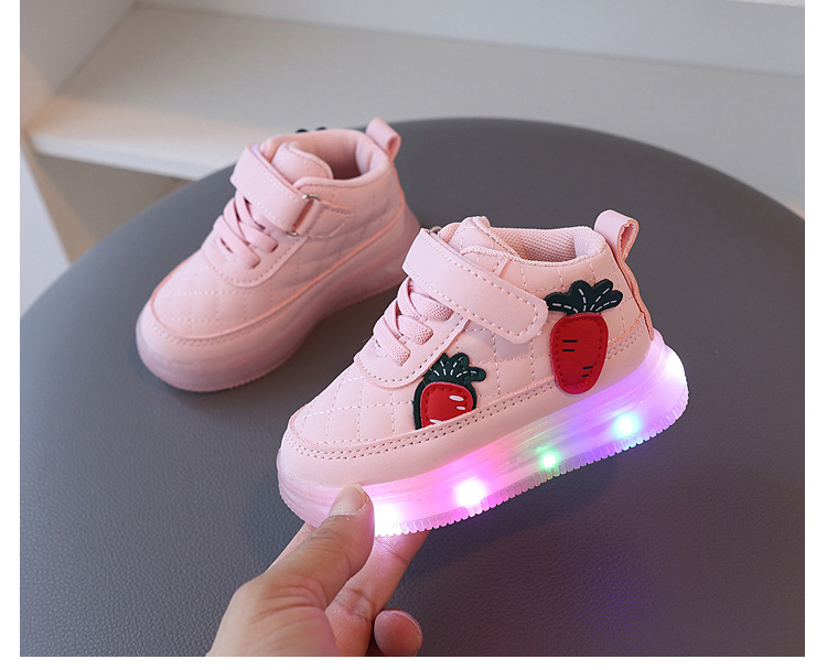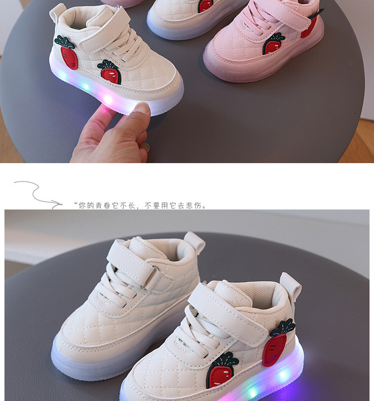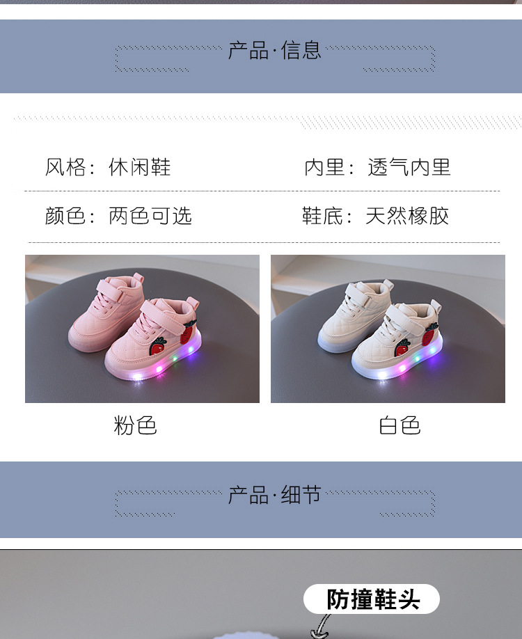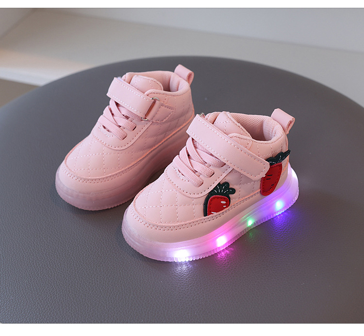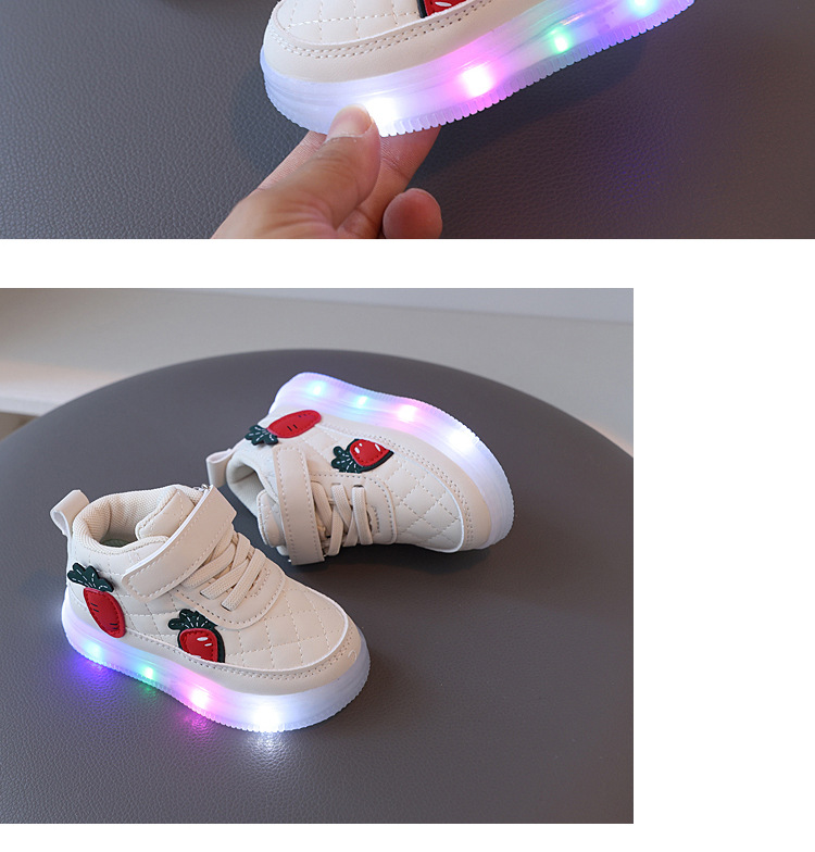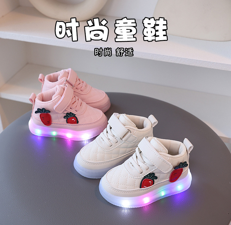 2024 봄과 가을 새로운 밝은 조명 어린이 보드 신발 미끄럼 방지 부드러운 바닥 딸기 만화 캐주얼 신발 소녀 1-3 세 2 남성 보물스토어 가기