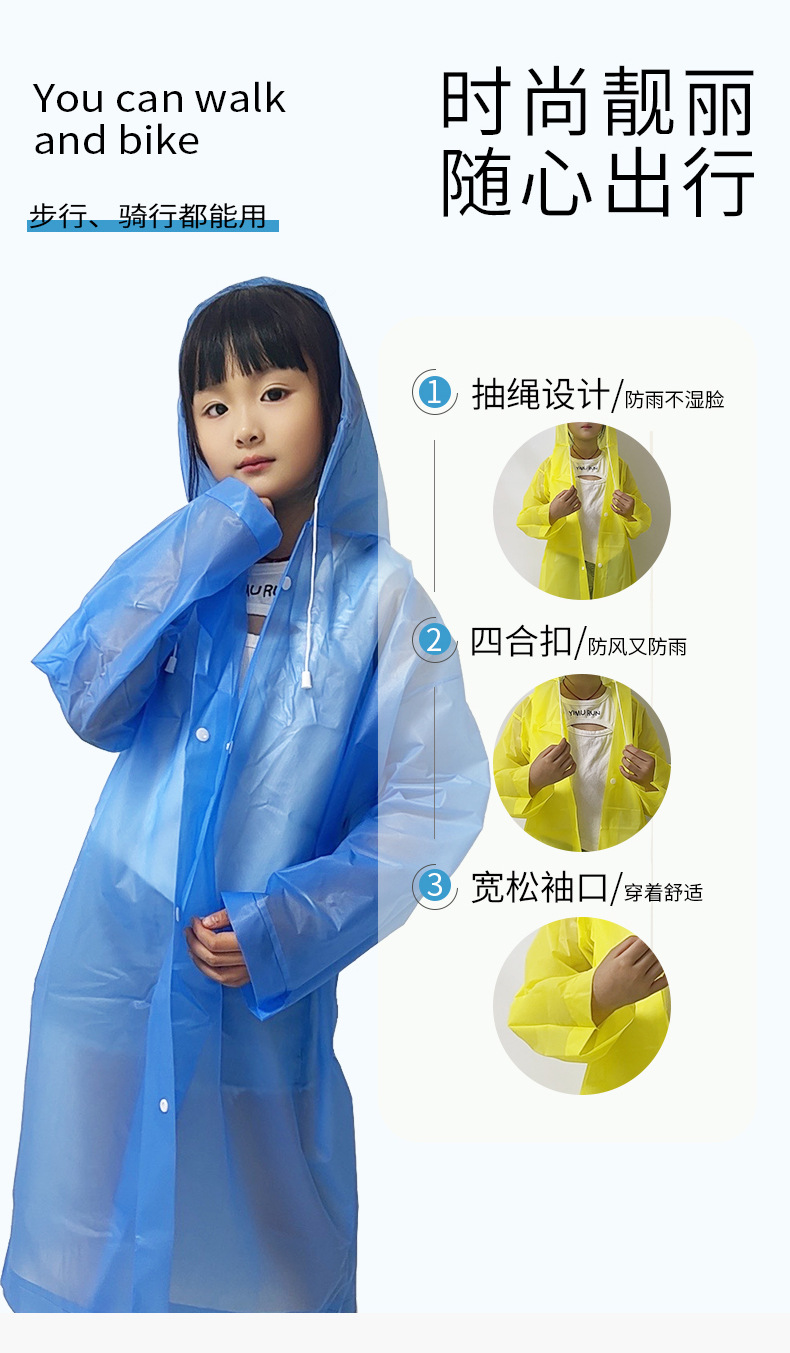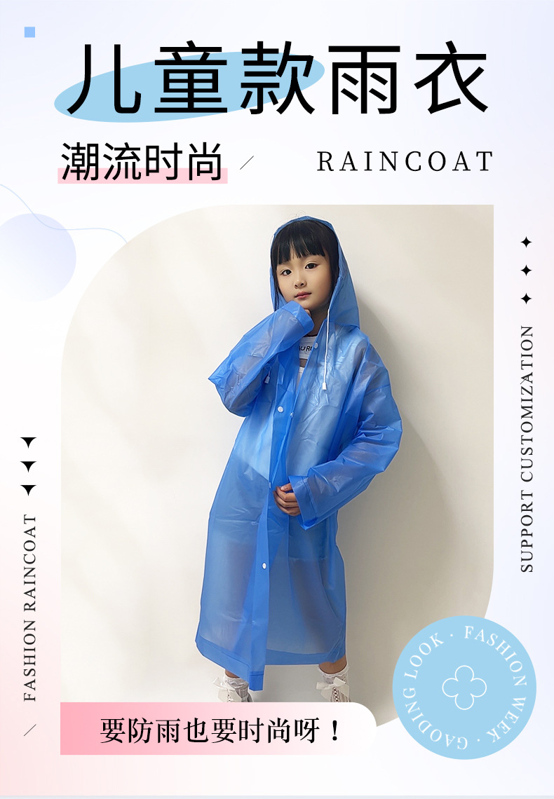 초등학생, 유치원 소년 소녀 EVA 휴대용 투명 야외 여행을위한 맞춤형 OEM 어린이 일회용 비옷스토어 가기