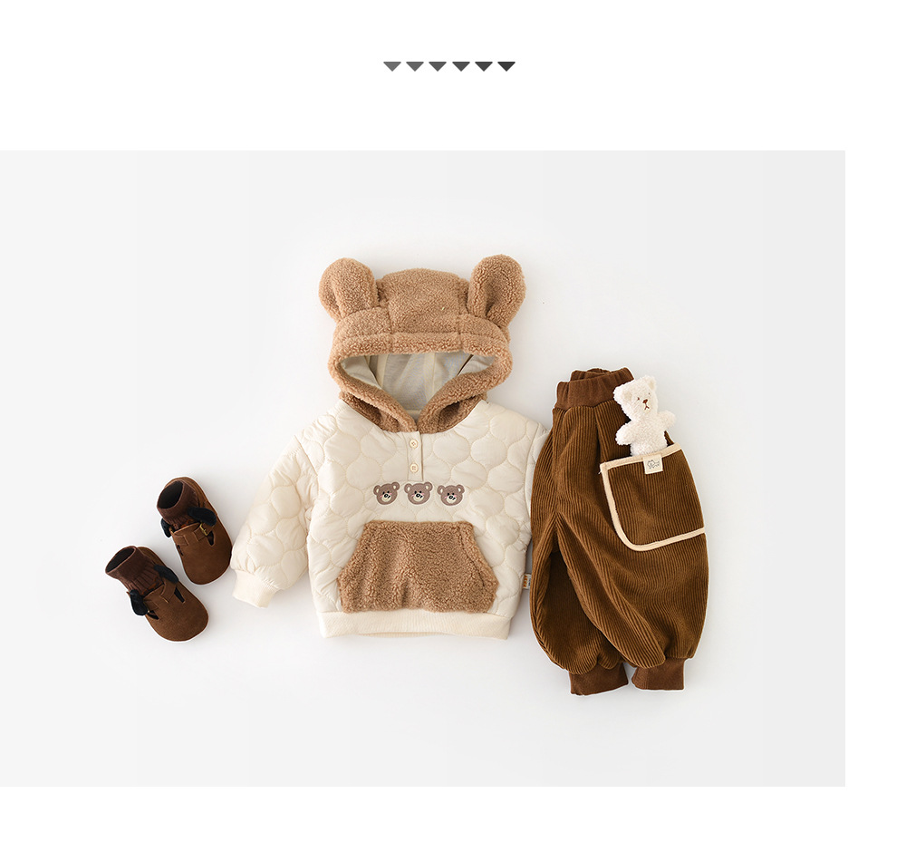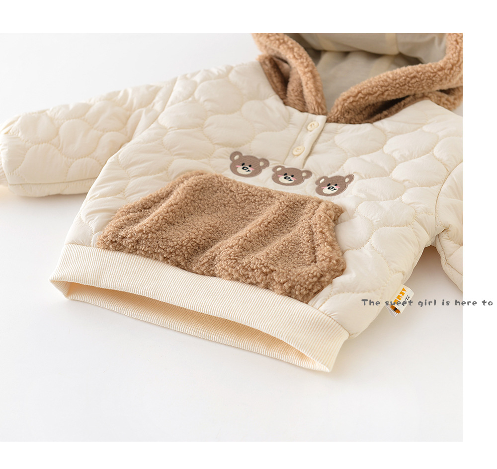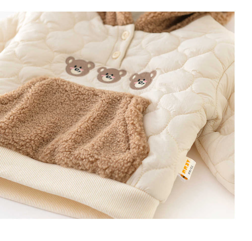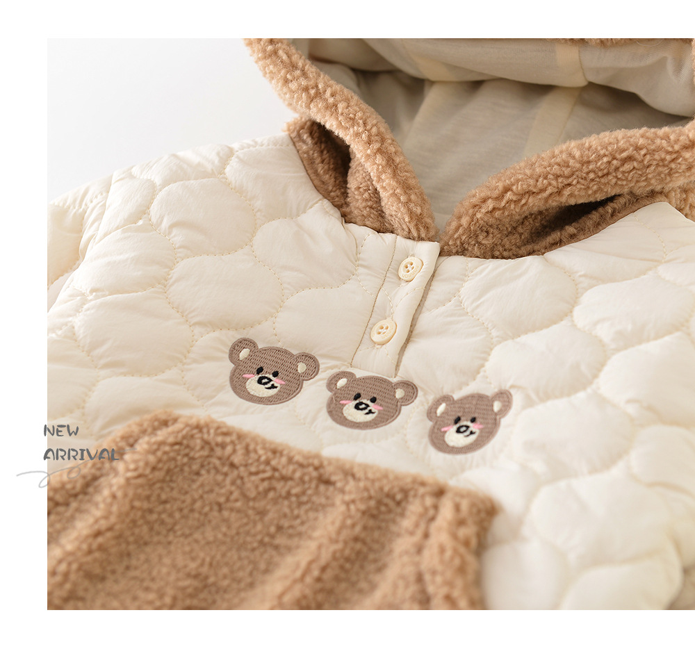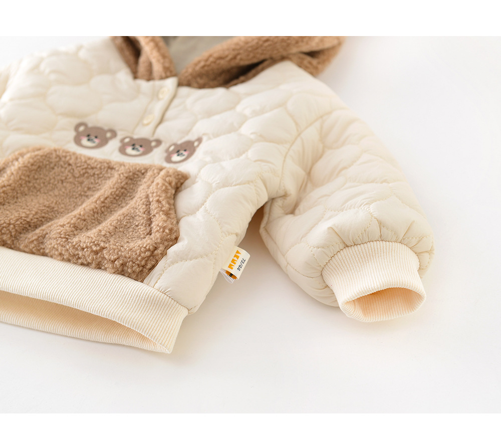 宝宝棉衣套装婴幼儿小熊连帽绗棉保暖冬装连帽加绒棉衣棉裤男女童