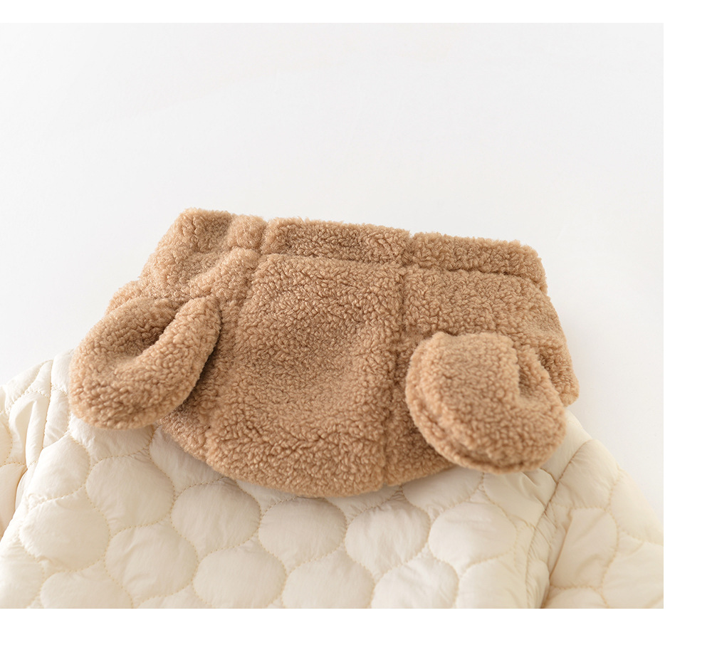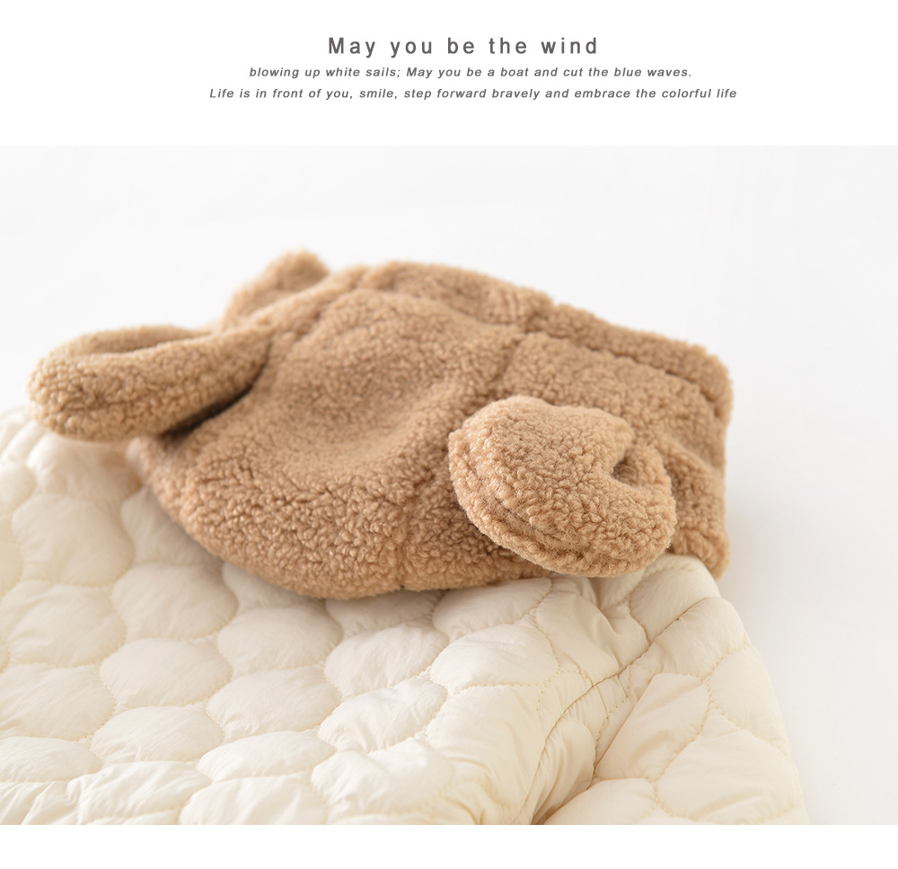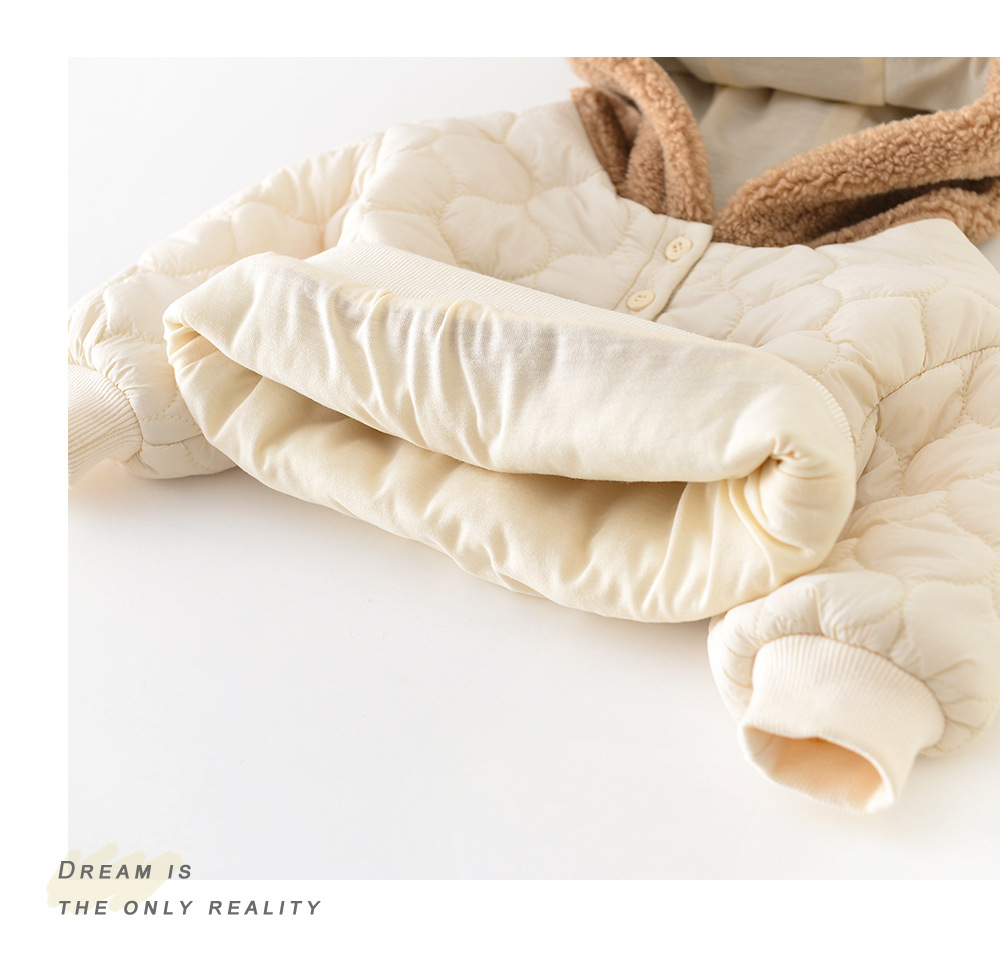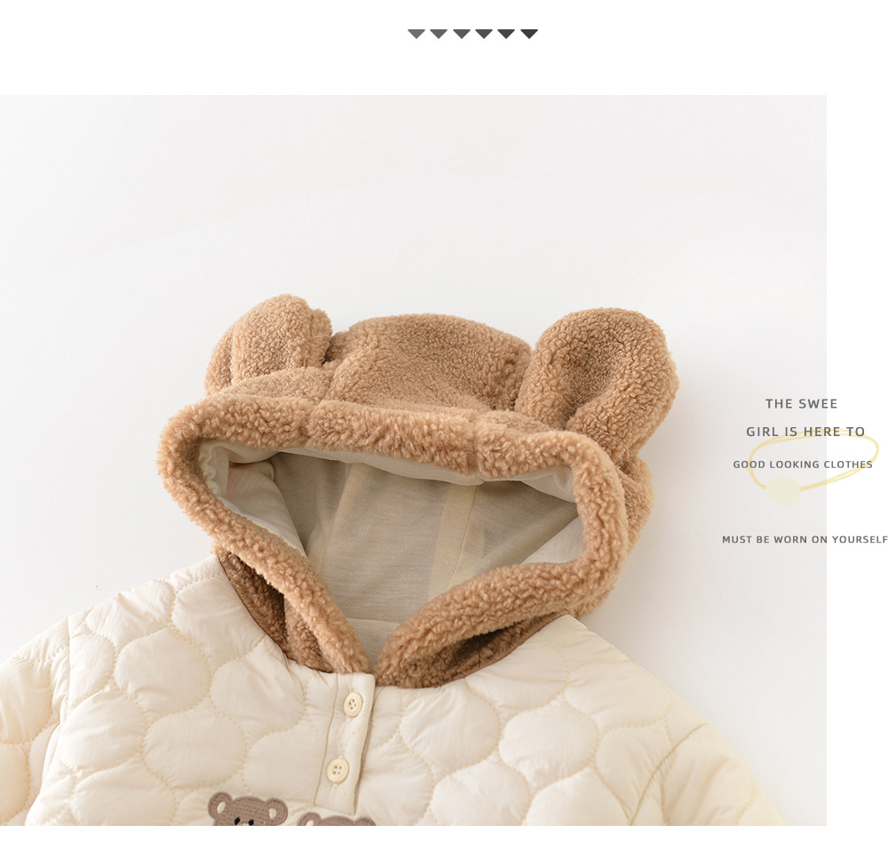 宝宝棉衣套装婴幼儿小熊连帽绗棉保暖冬装连帽加绒棉衣棉裤男女童