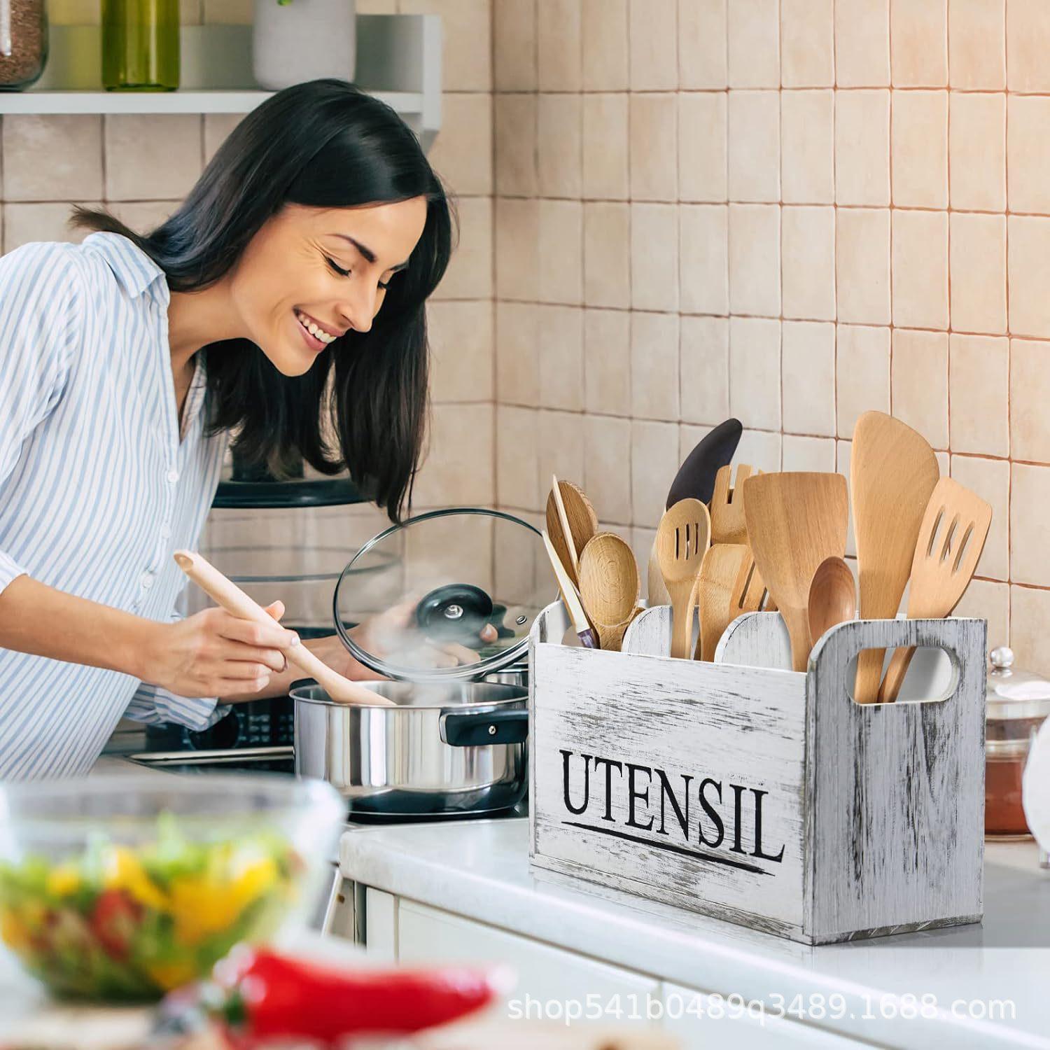 복고풍 나무 저장 상자 주방 멀티 그리드 나이프와 포크 스푼 플로팅 박스 데스크탑 솔리드 우드 사용 식기 저장 상자스토어 가기