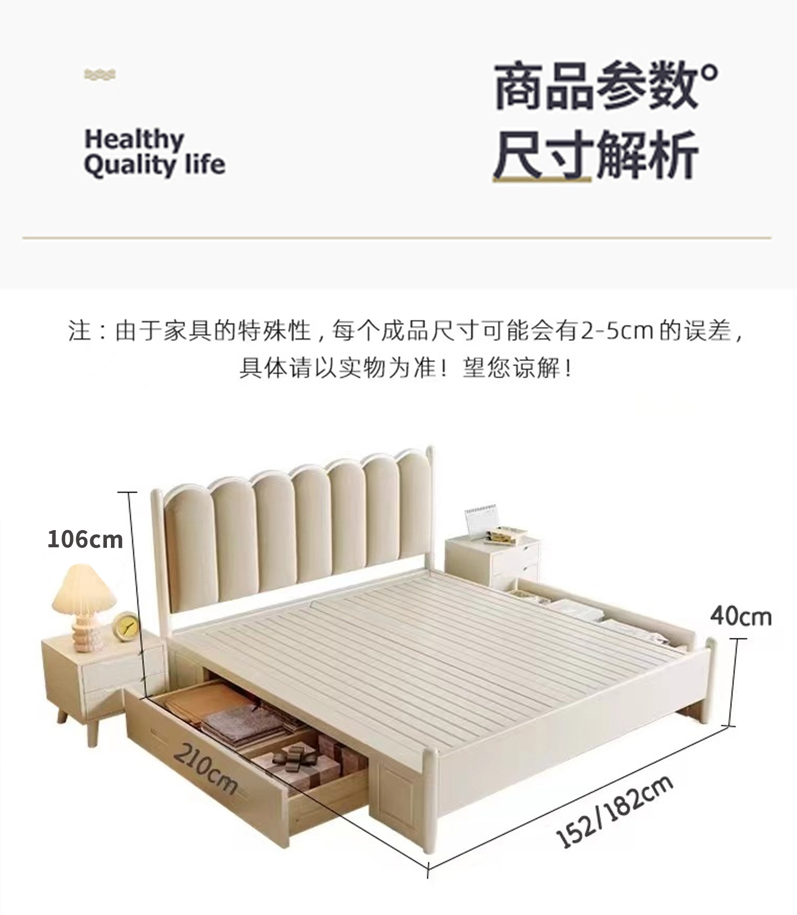 단단한 나무 침대 마스터 침실 크림 바람 새로운 1.8 m 부드러운 가방 더블 침대 간단한 1.5 m 침실 작은 아파트 원래 나무 침대스토어 가기