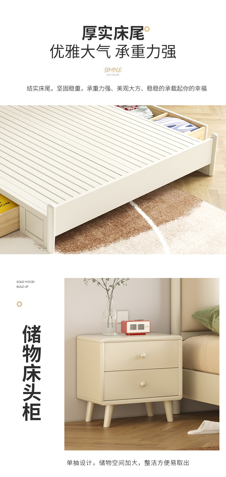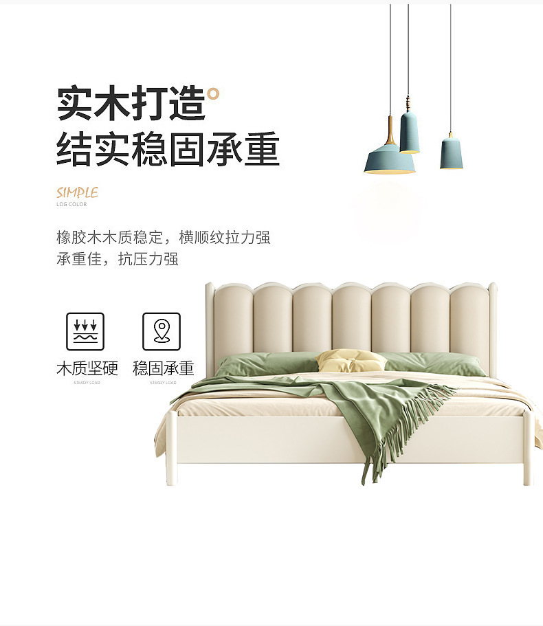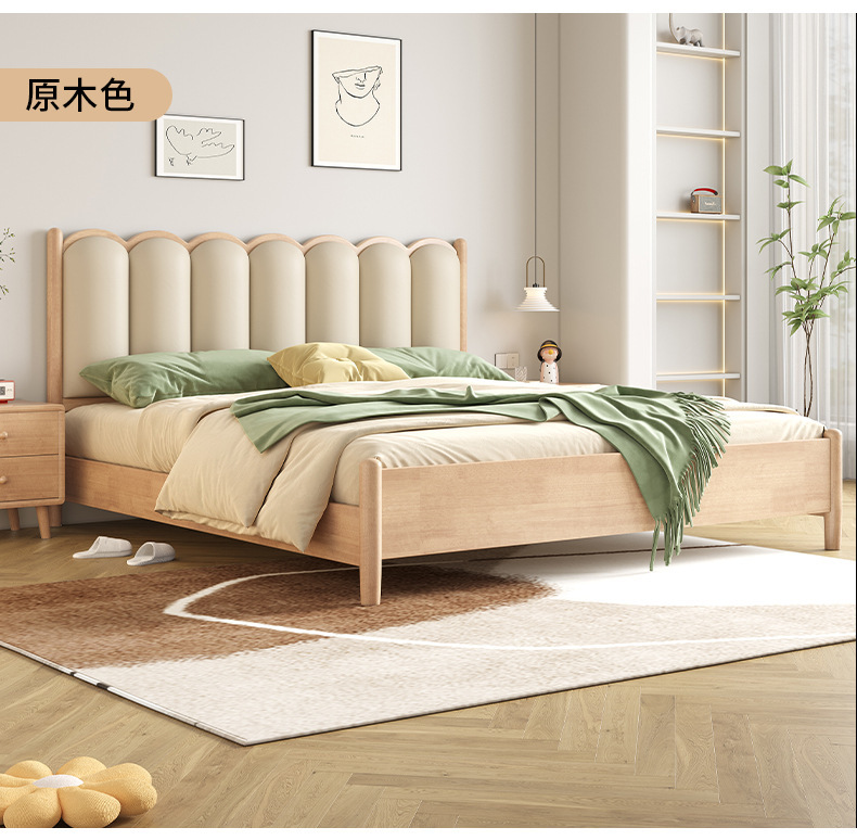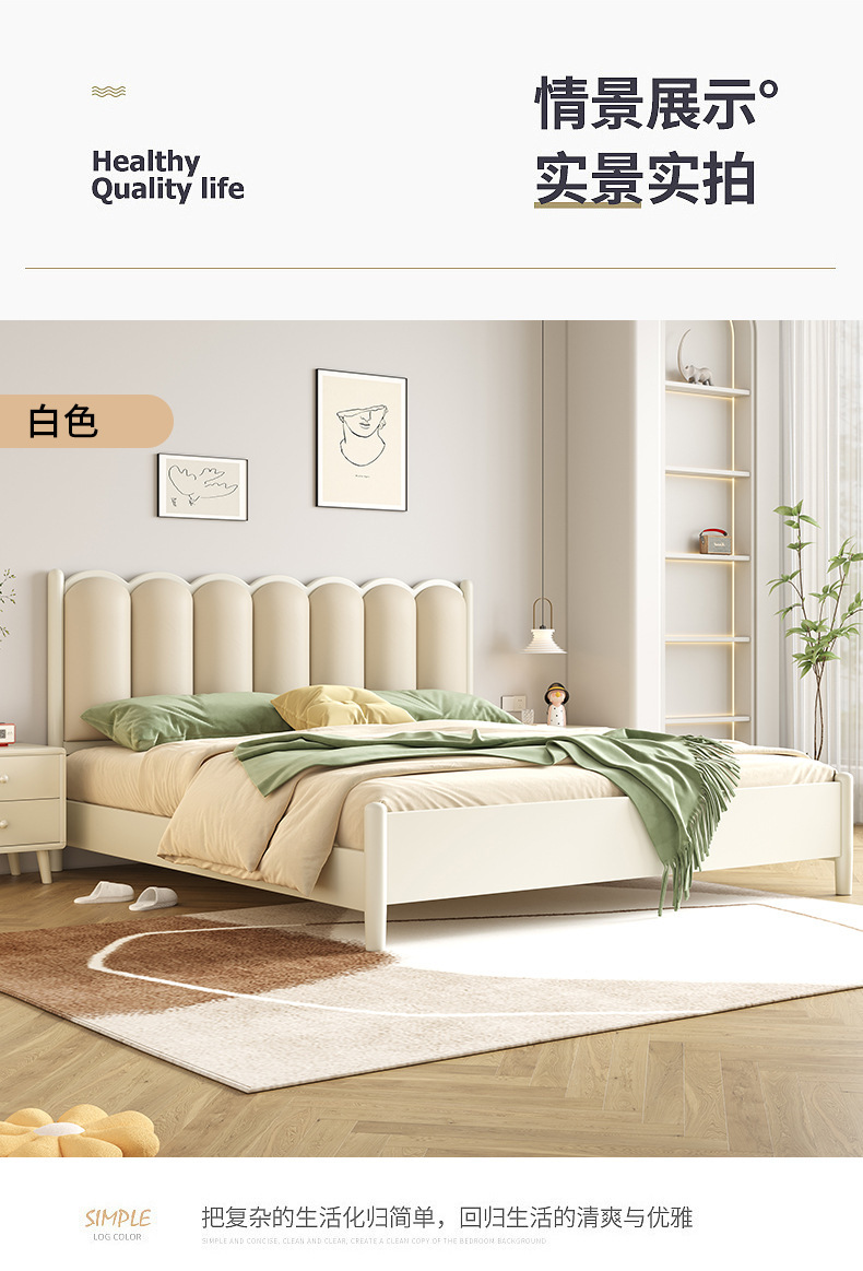 단단한 나무 침대 마스터 침실 크림 바람 새로운 1.8 m 부드러운 가방 더블 침대 간단한 1.5 m 침실 작은 아파트 원래 나무 침대