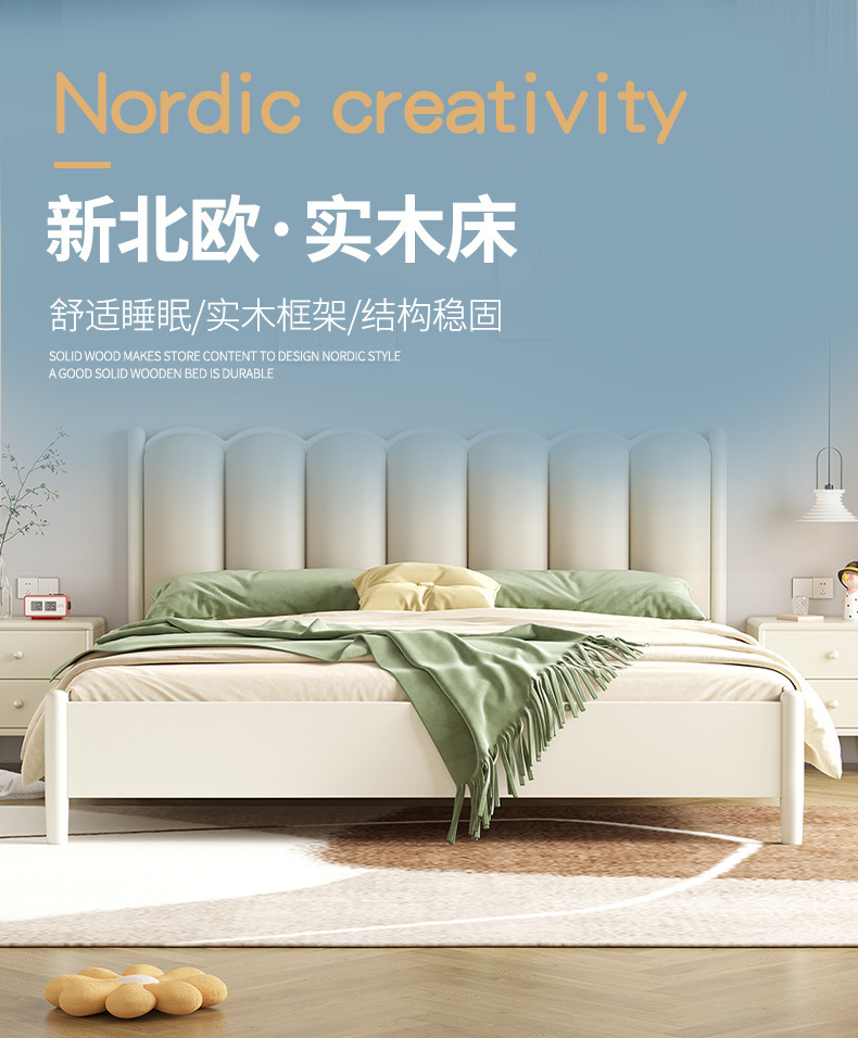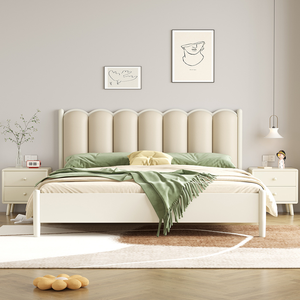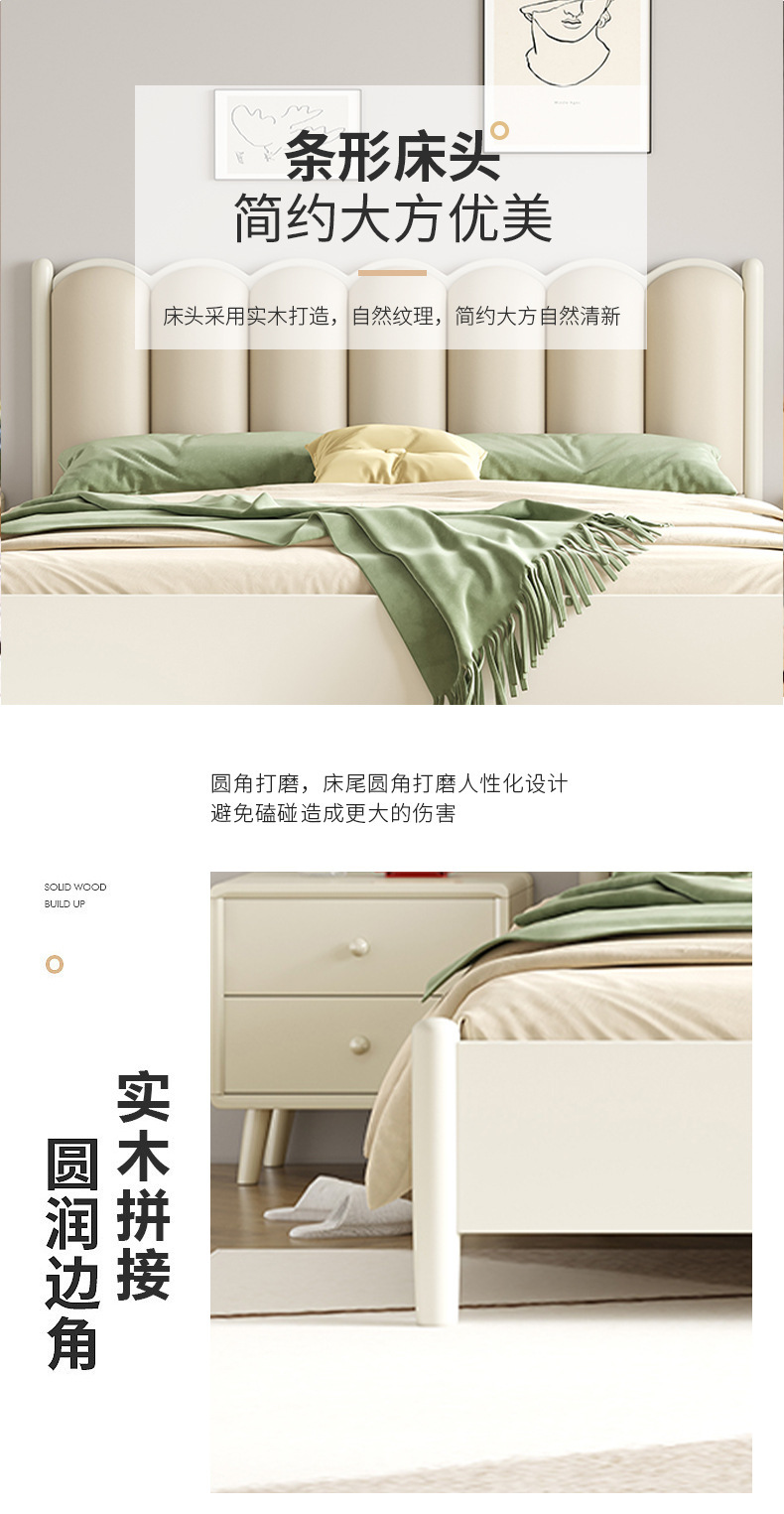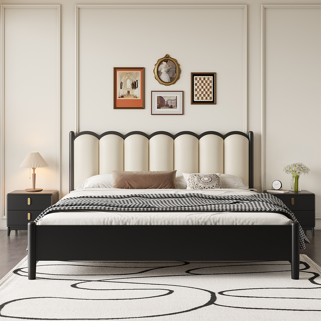 단단한 나무 침대 마스터 침실 크림 바람 새로운 1.8 m 부드러운 가방 더블 침대 간단한 1.5 m 침실 작은 아파트 원래 나무 침대