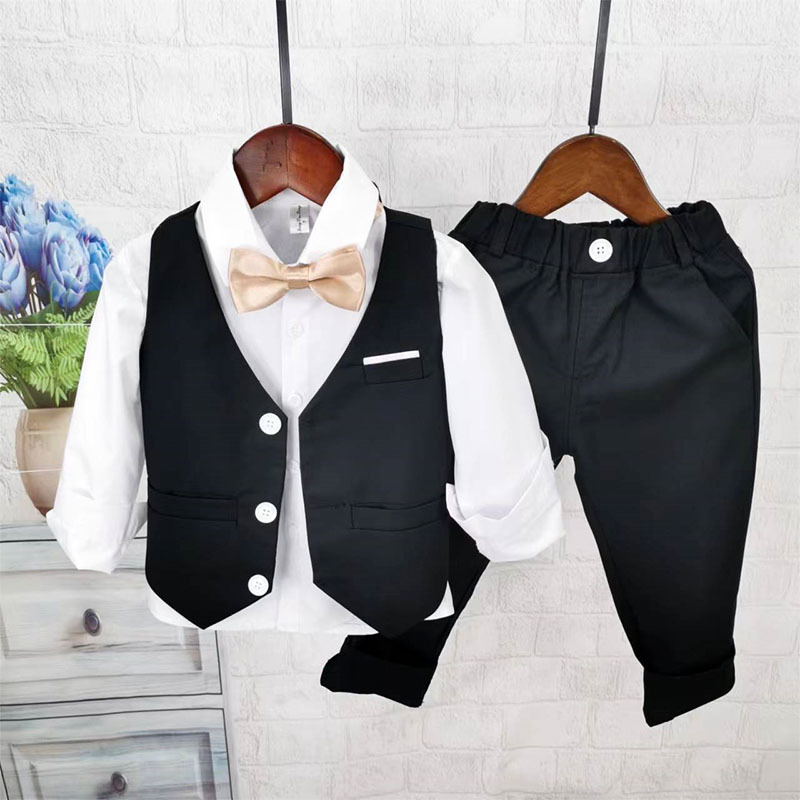 • 7088 검은색 조끼 정장 + 흰색 셔츠 (샴페인 나비넥타이 포함)