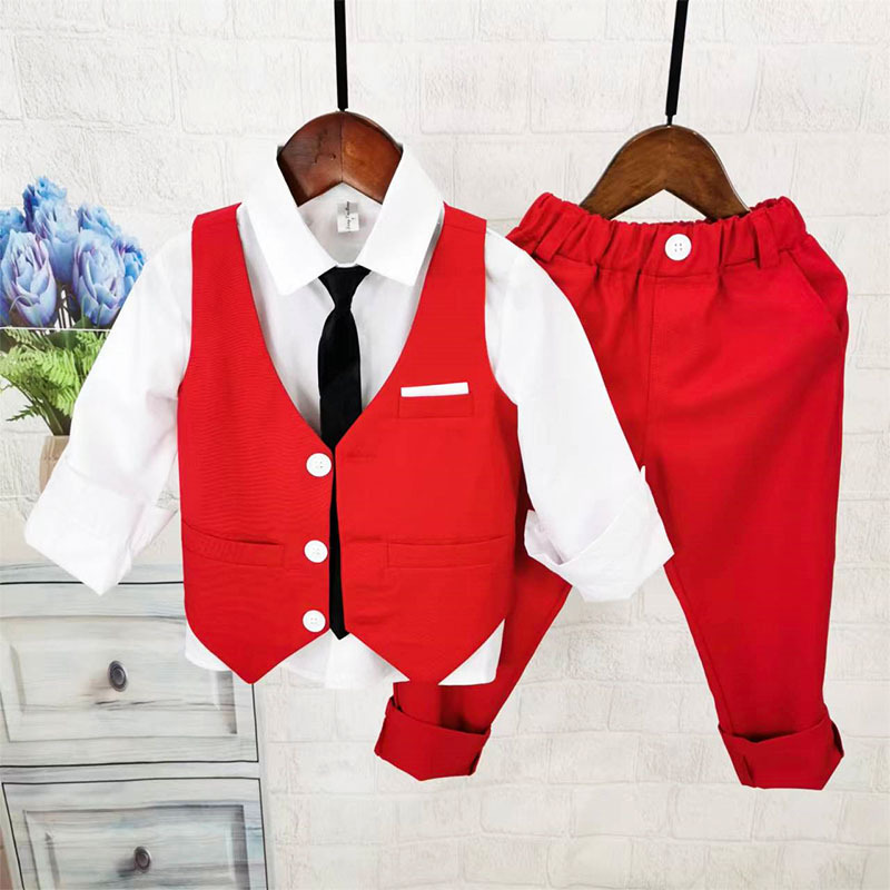 • 7088 빨간 조끼 정장 + 흰색 셔츠 (샴페인 나비 넥타이 포함)