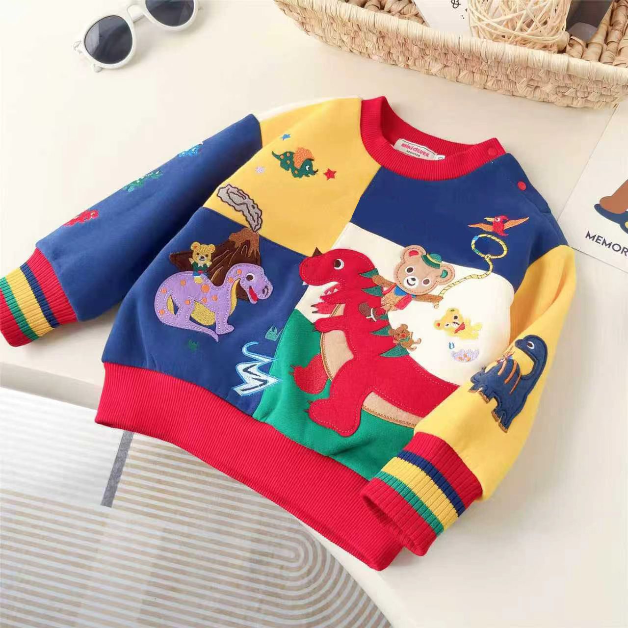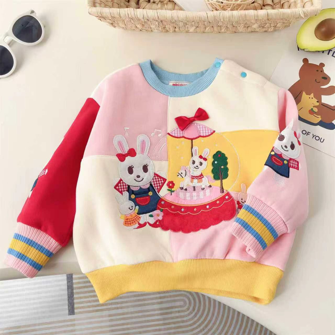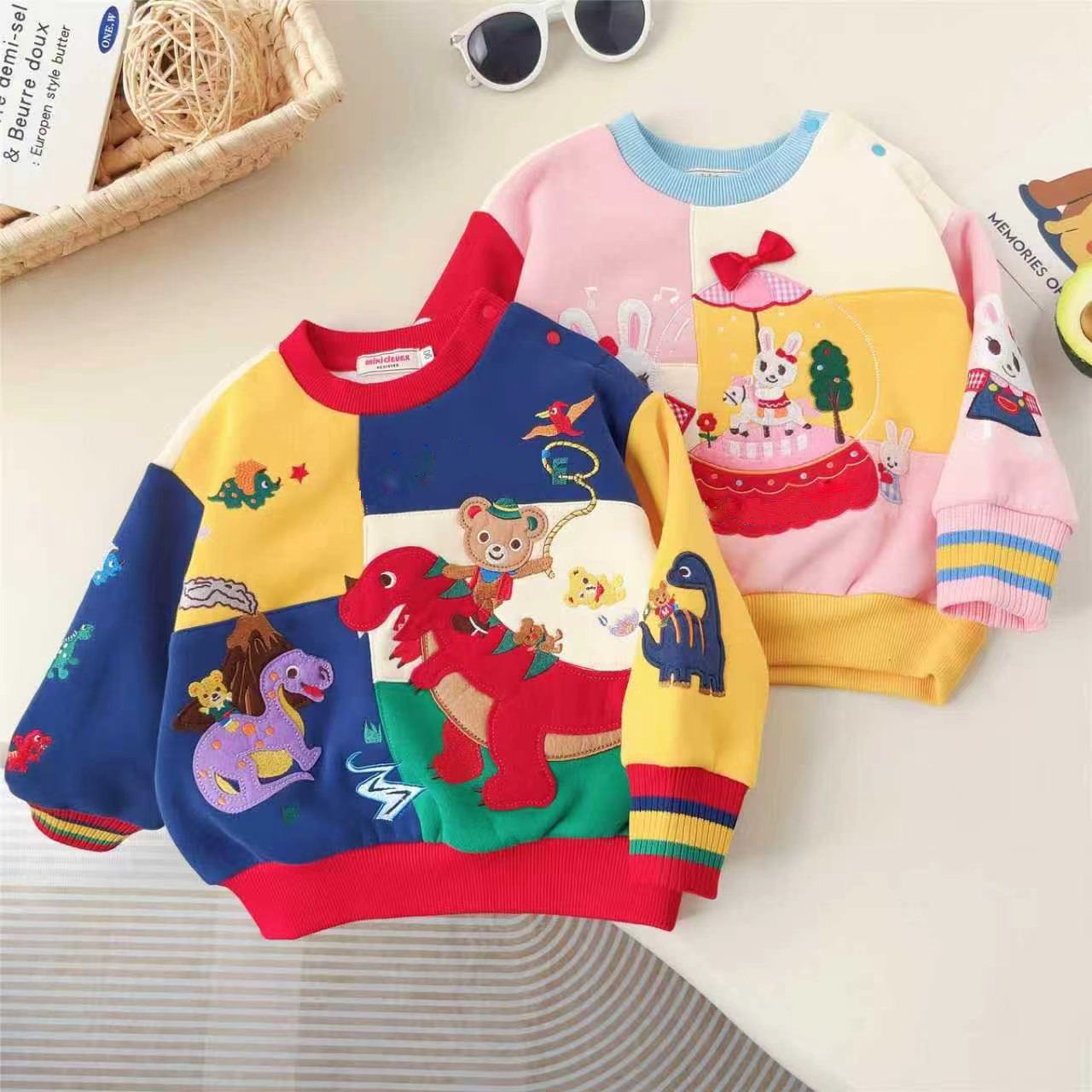일본 럭셔리 스플 라이스 베어 토끼 공룡 파크 벨벳 스웨트 셔츠 24 가을, 겨울 새로운 소년 소녀 스웨트 셔츠 6061