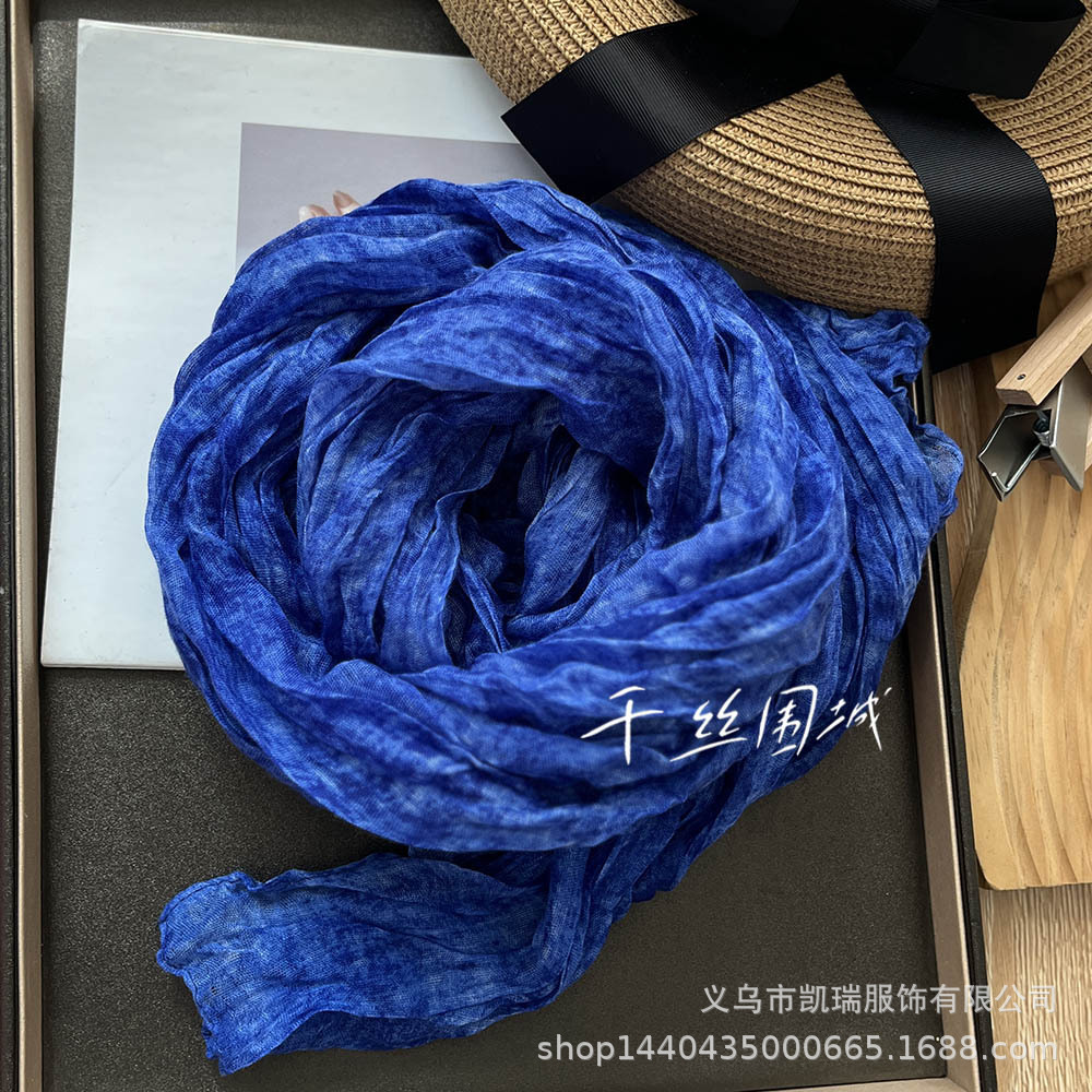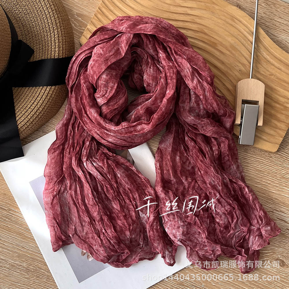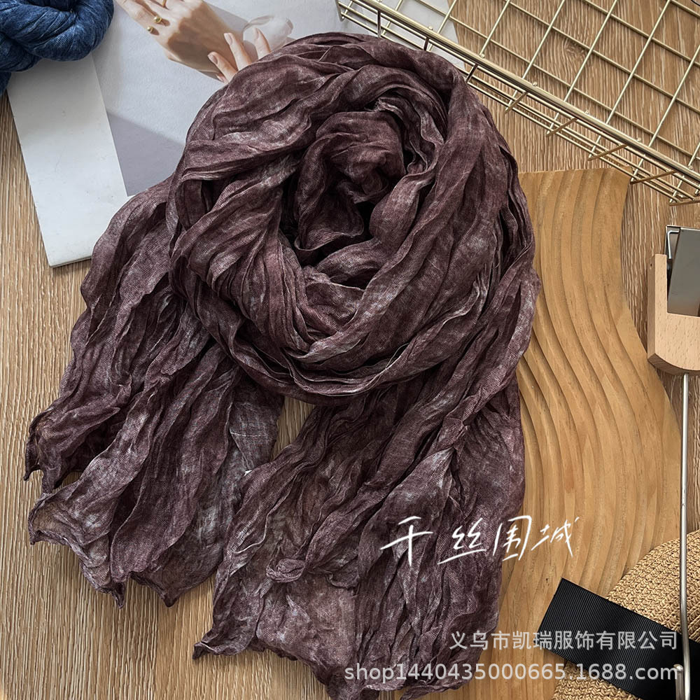 넥타이 염색 코튼 및 리넨 스카프 빈티지 가을과 겨울 새로운 도착 Pleated 커피 빈티지 남성과 여성을위한 얇은 긴 목도리 따뜻한 실크 스카프스토어 가기