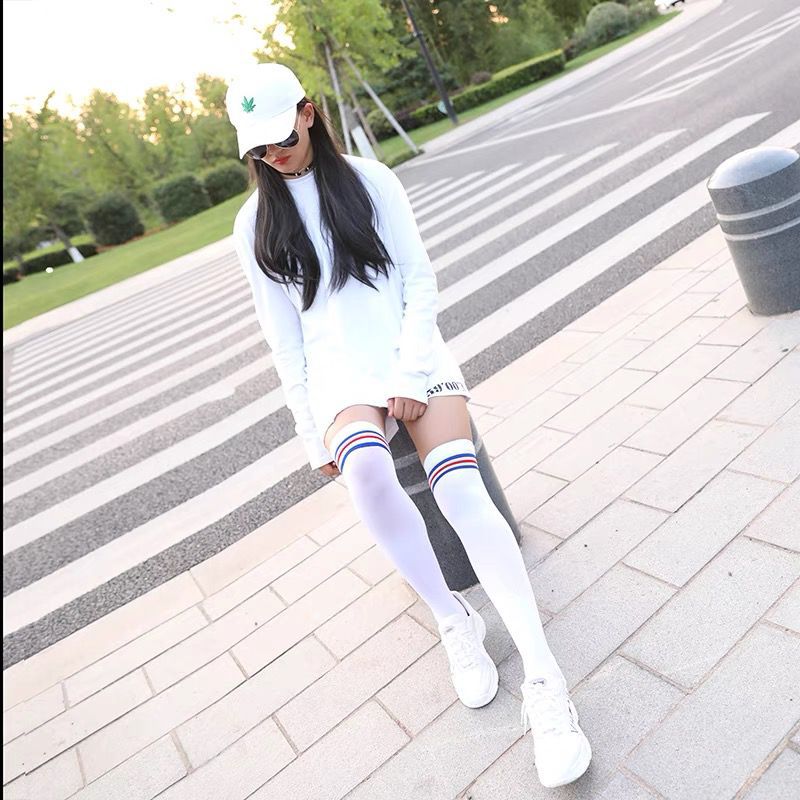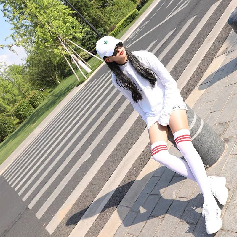 스타킹 오버 더 무릎 양말 여성의 봄과 가을 대학 스타일 흑백 3 바 압력 높은 배럴 JK 봄과 가을 헐크 양말스토어 가기