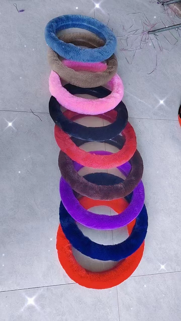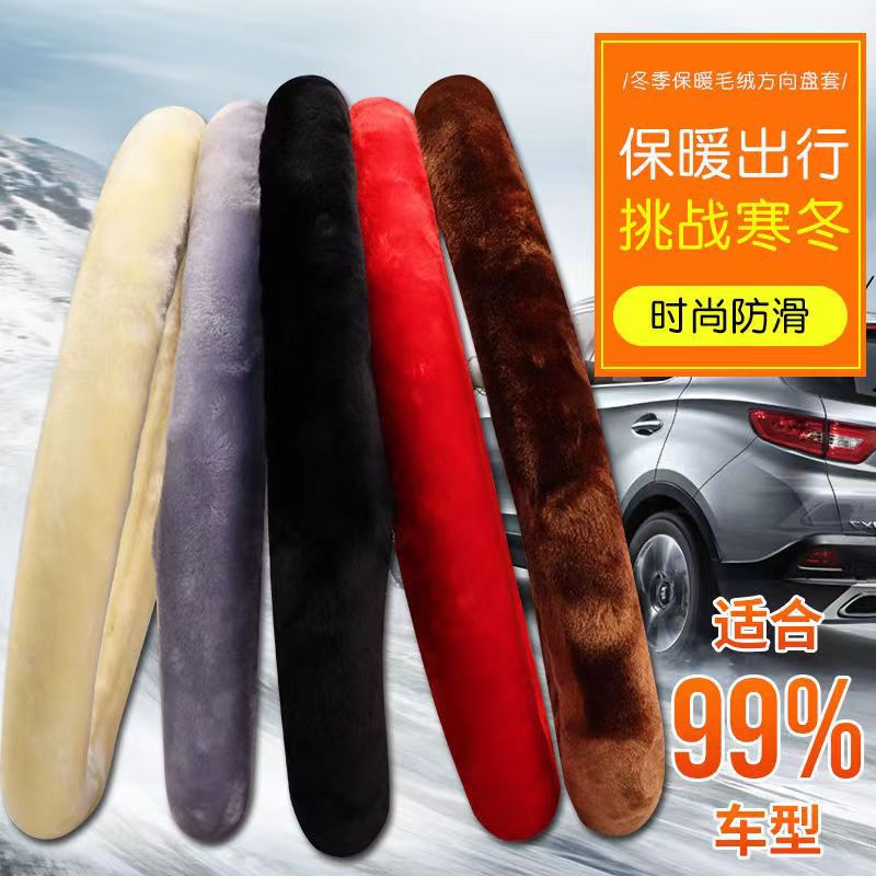 자동차 스티어링 휠 커버 겨울 자동차 플러시 핸들 커버 따뜻한 미끄럼 방지 자동차 고무 링 플러시 스티어링 휠 커버