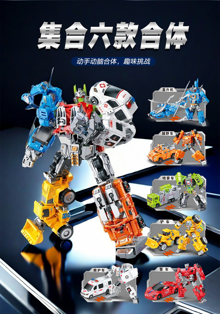 Yuexing Liuhe 바디 변형 조립 합금 로봇 구조 변형 팀 모델 장난감 소년 선물