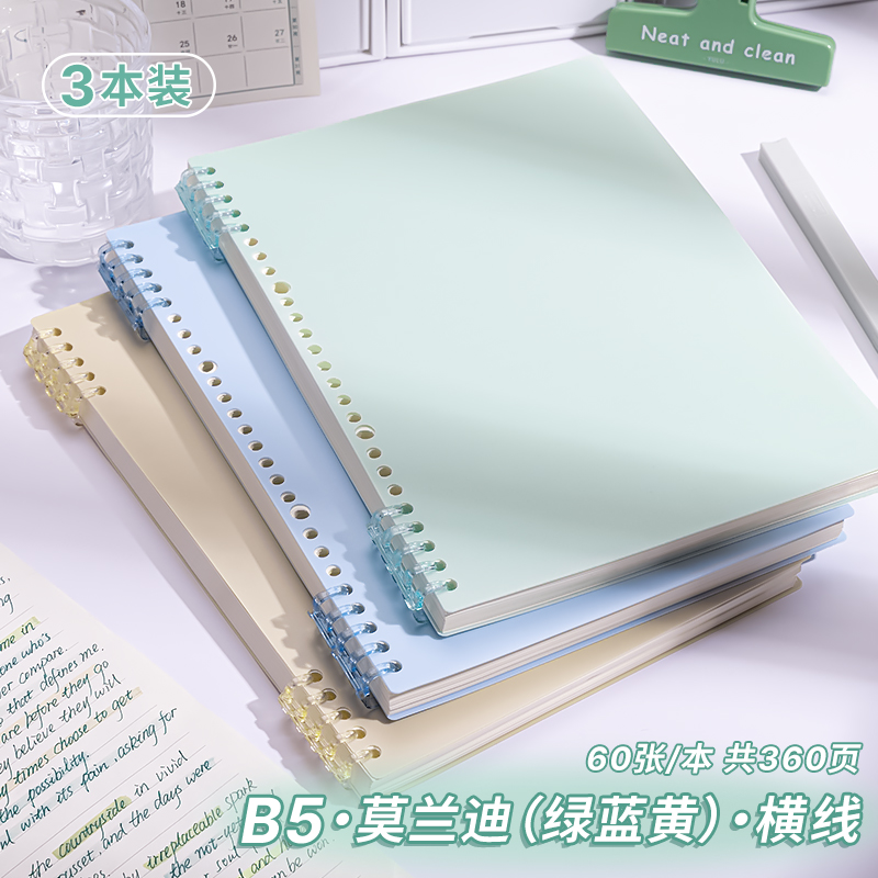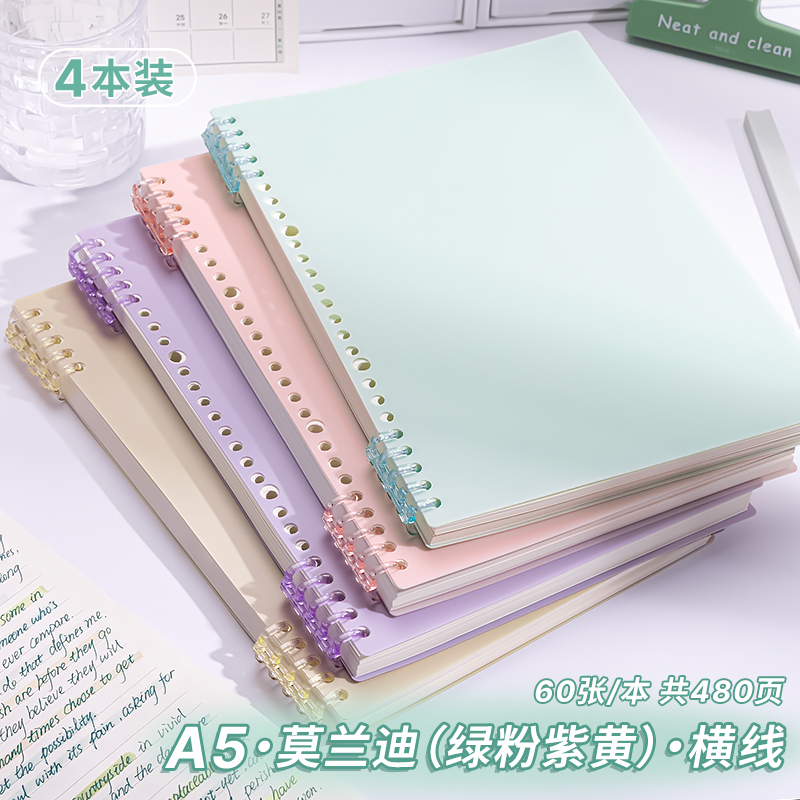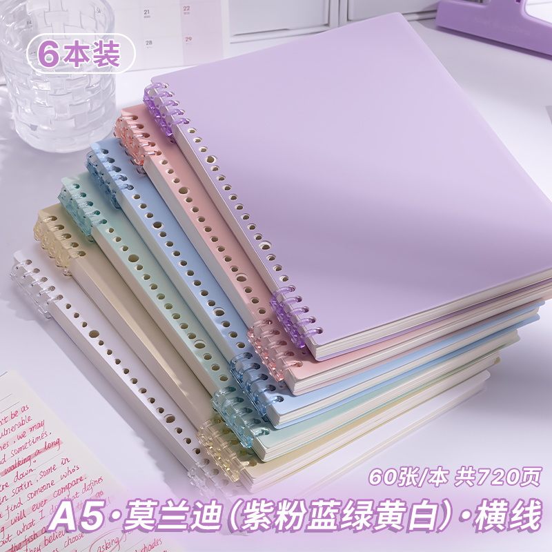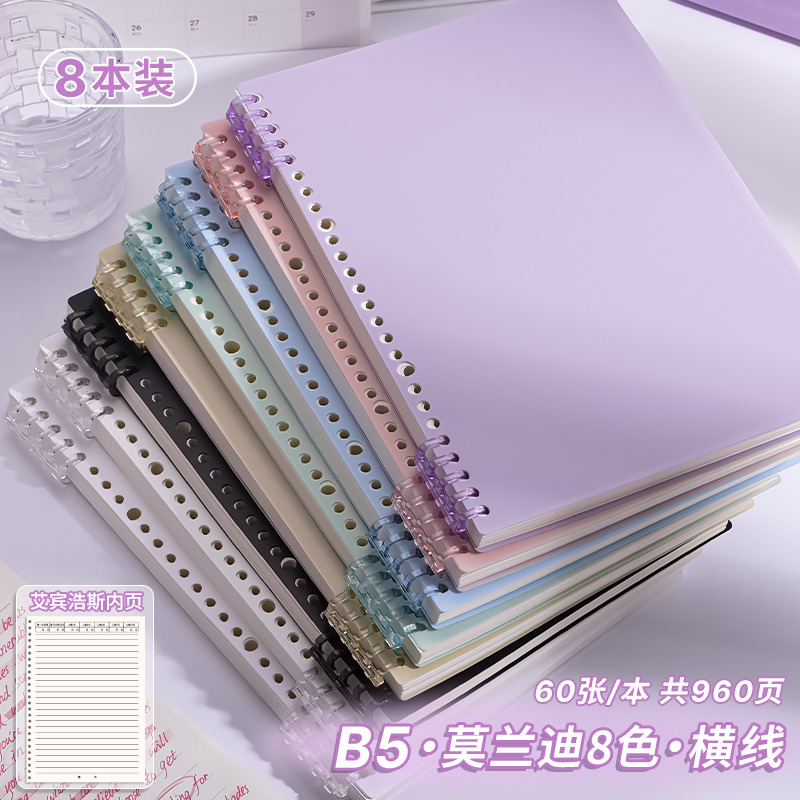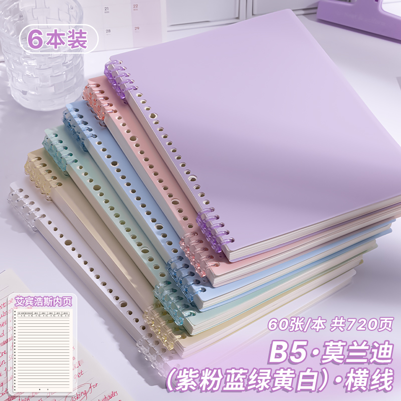 B5 Morandi의 핸즈프리 느슨한 잎 노트북 분리 가능한 코일 노트북 a4 중학생 a5 특별 노트