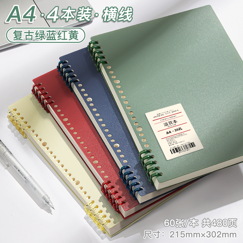 • A4 가로줄·4권[레트로 4색] 총 480페이지