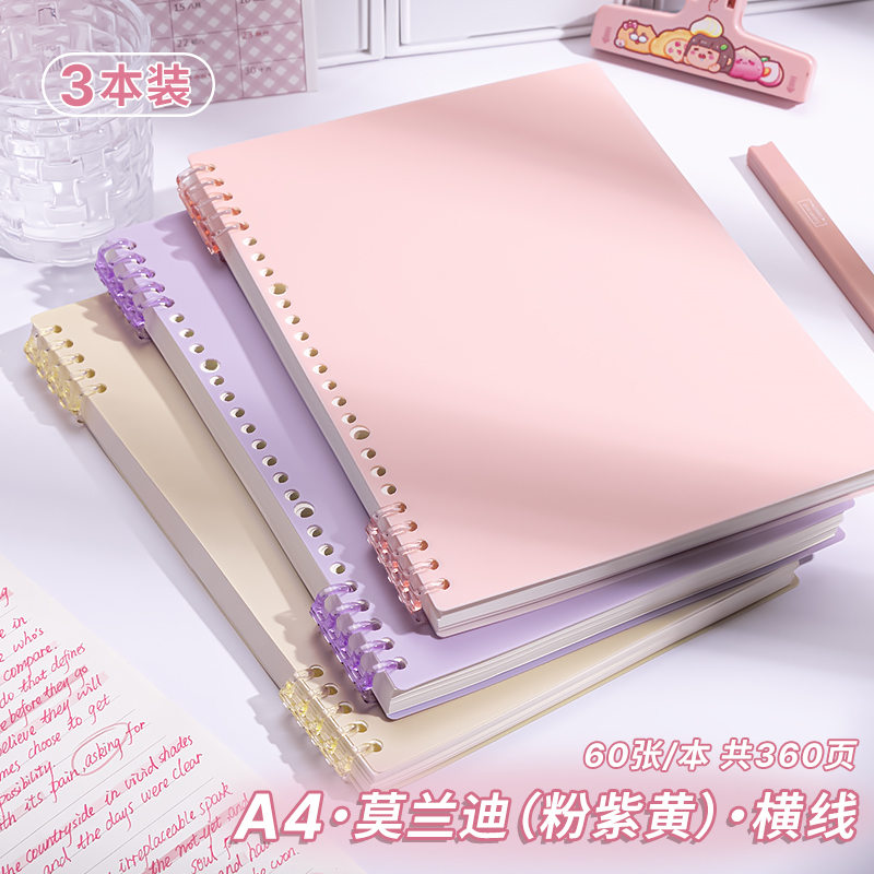 • A4 가로줄·3권[노란색+보라색+분홍색] 총 360페이지
