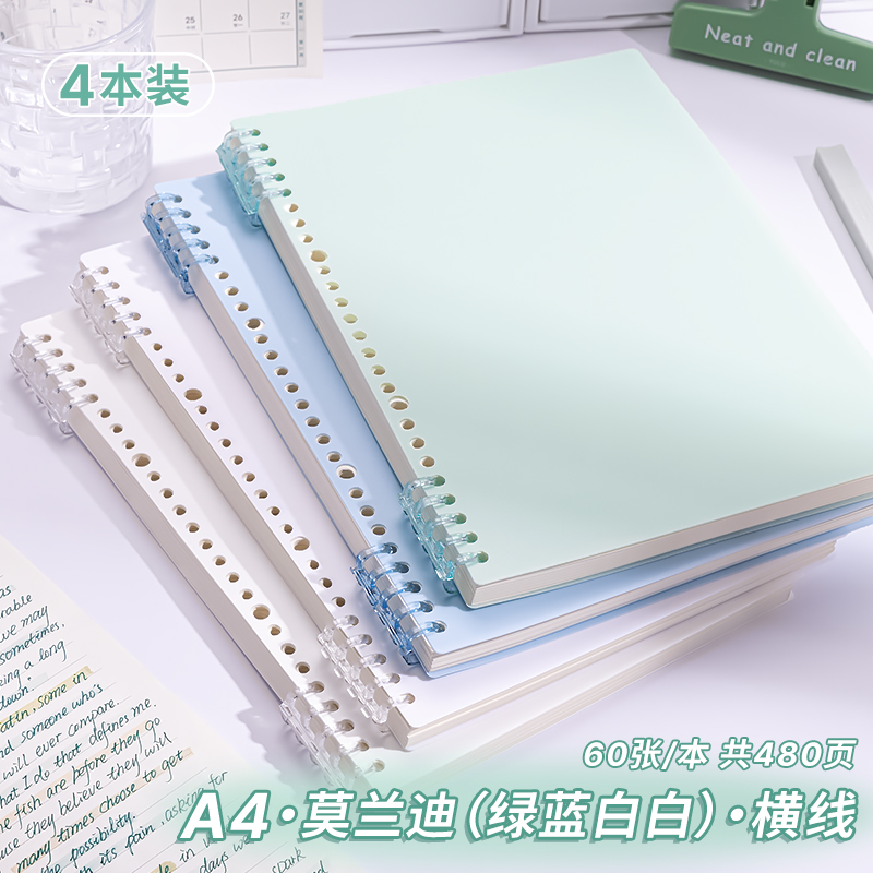 • A4 가로줄·4권[흰색 2개 + 파란색 + 녹색] 총 480페이지