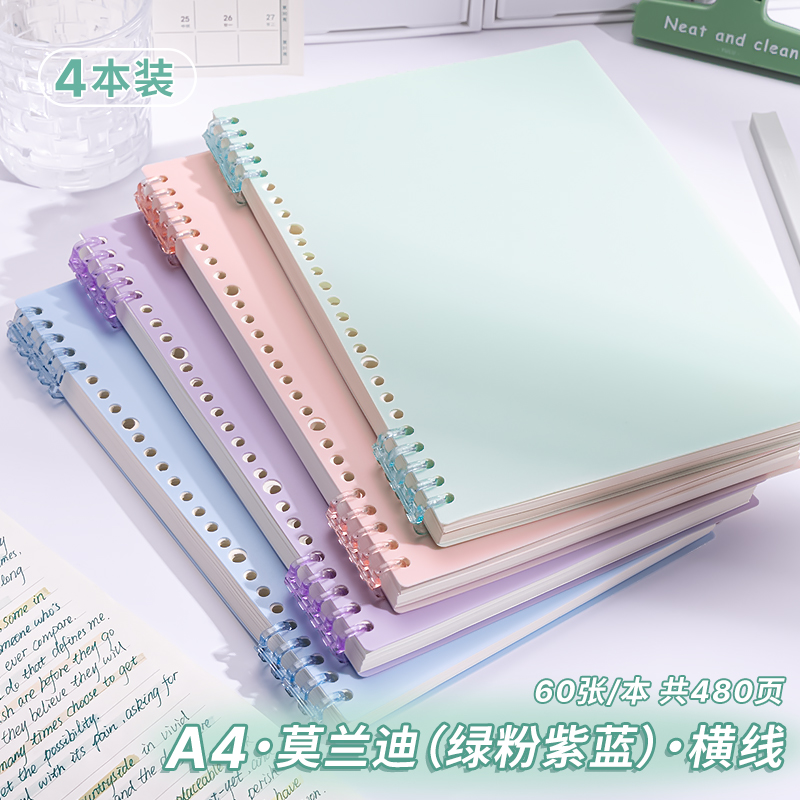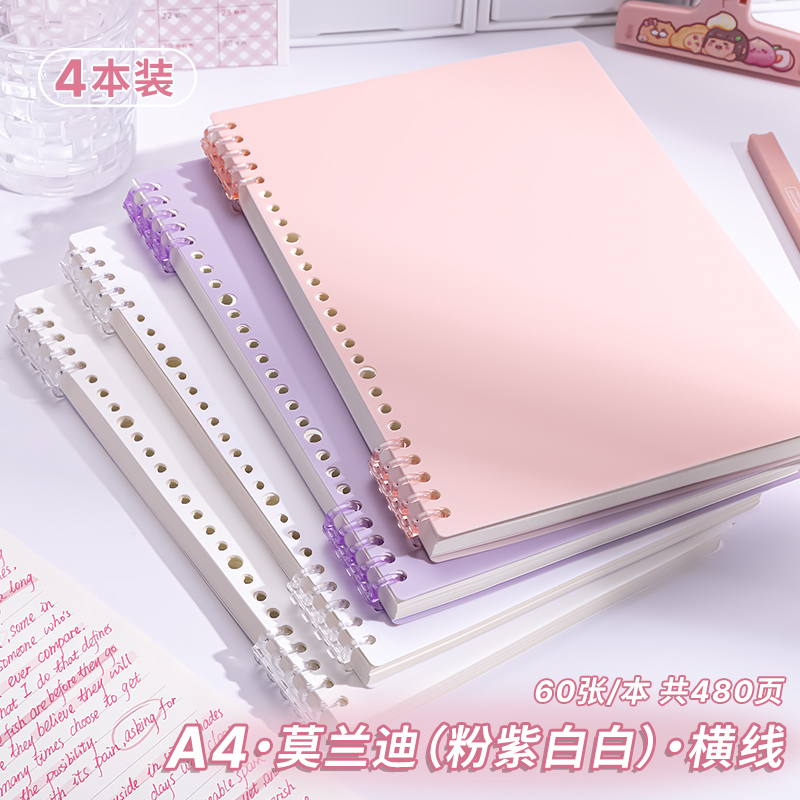 • A4 가로줄·4권[흰색 2개+보라색+분홍색] 총 480페이지