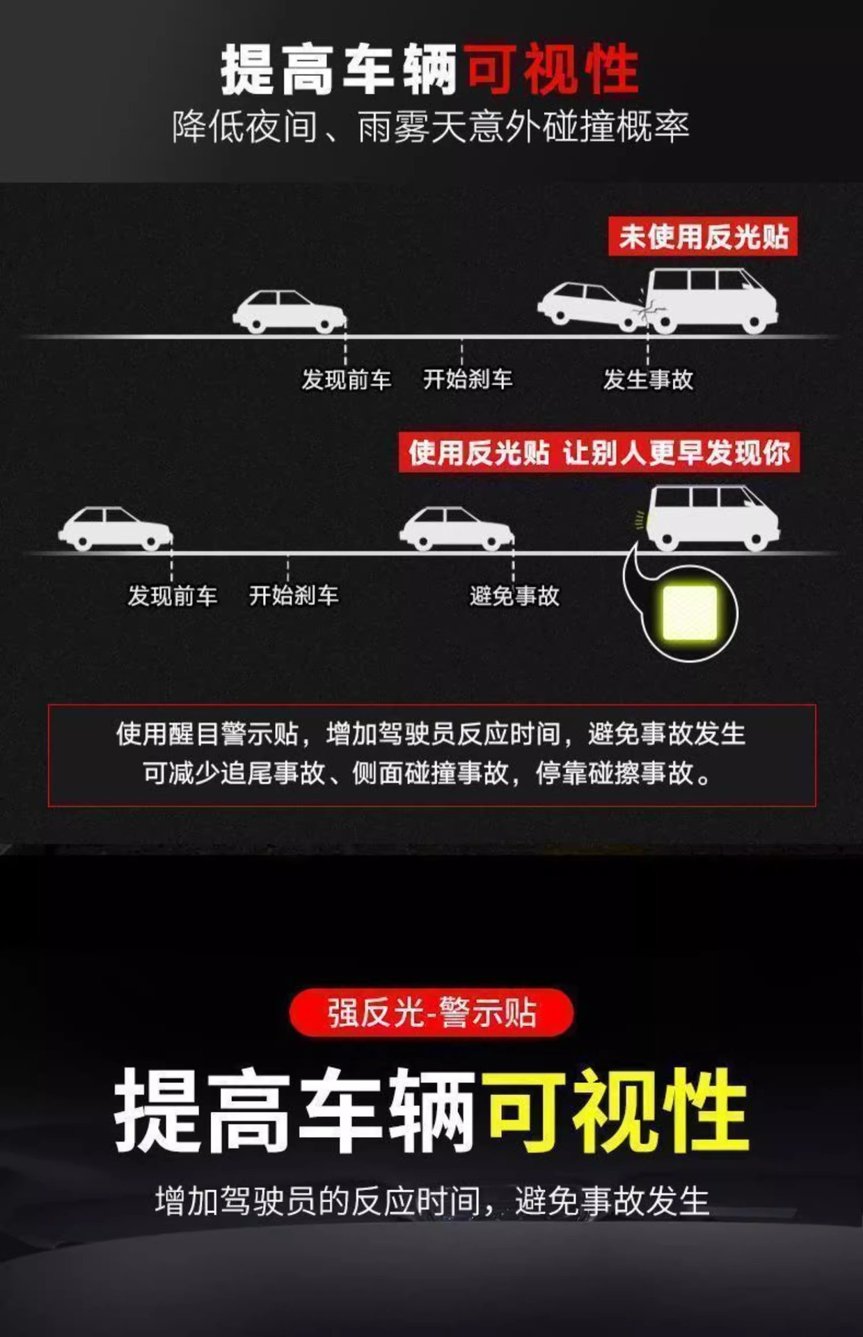 자동차 반사 스티커 전기 오토바이 야간 충돌 방지 자전거 스티커 헬멧 장식 스티커 경고 표지판스토어 가기