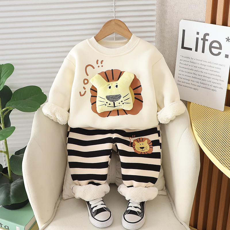 아동복 소년 가을/겨울 세트 2024 새로운 스타일 소년 겨울복 기모 옷 소년 아기 이피 잘 생긴 코트스토어 가기