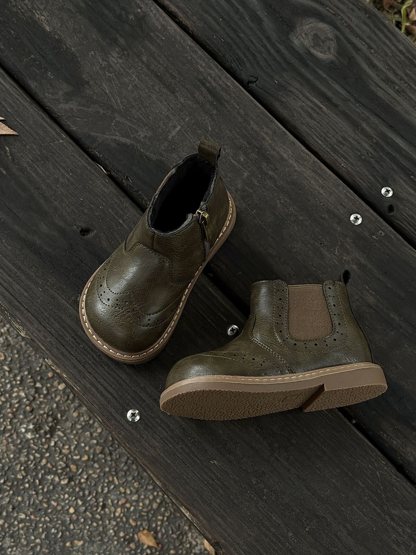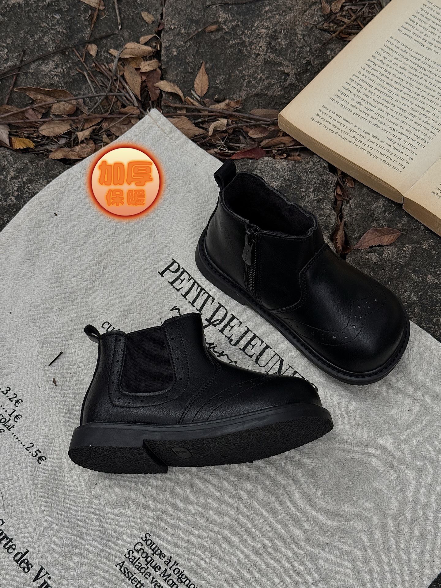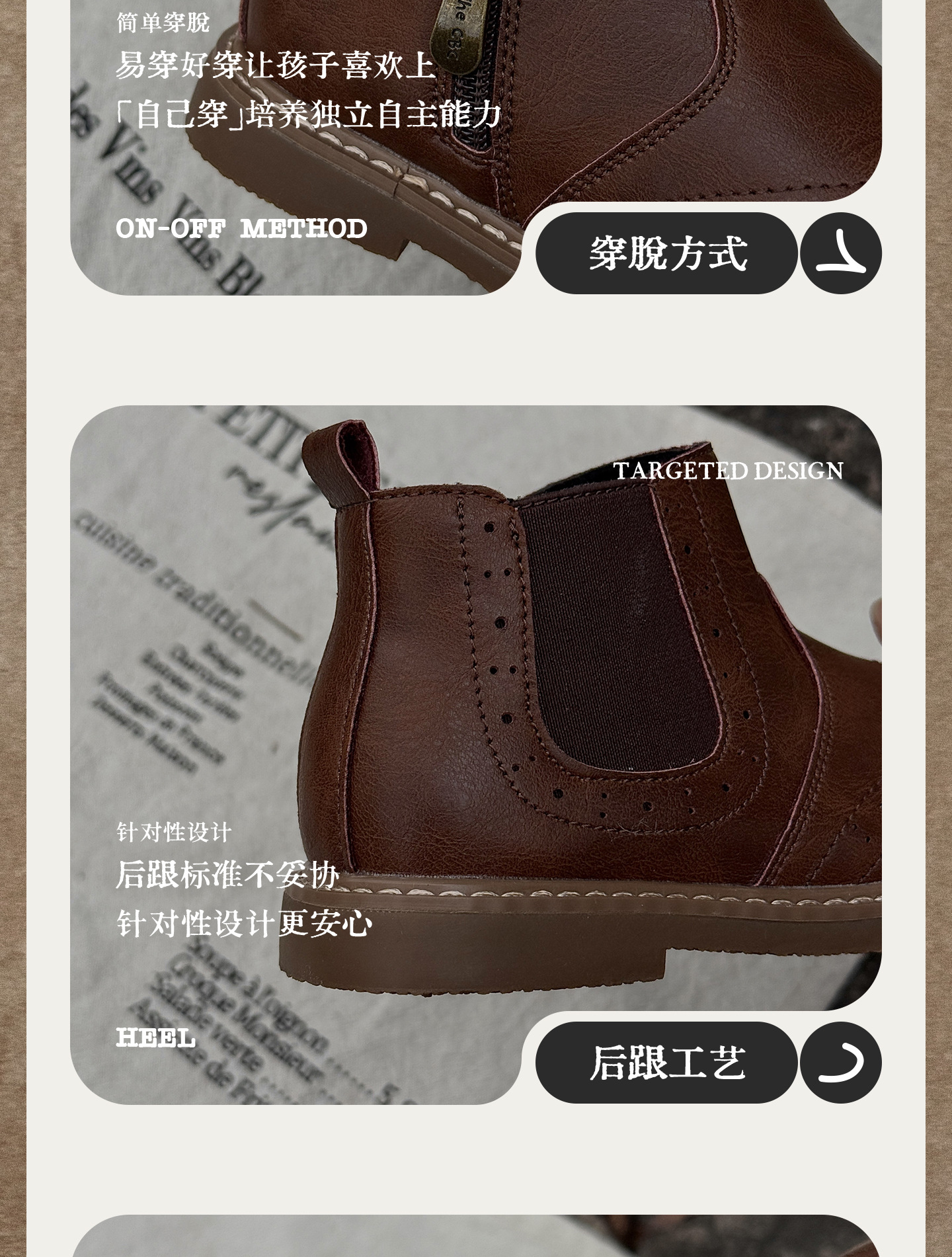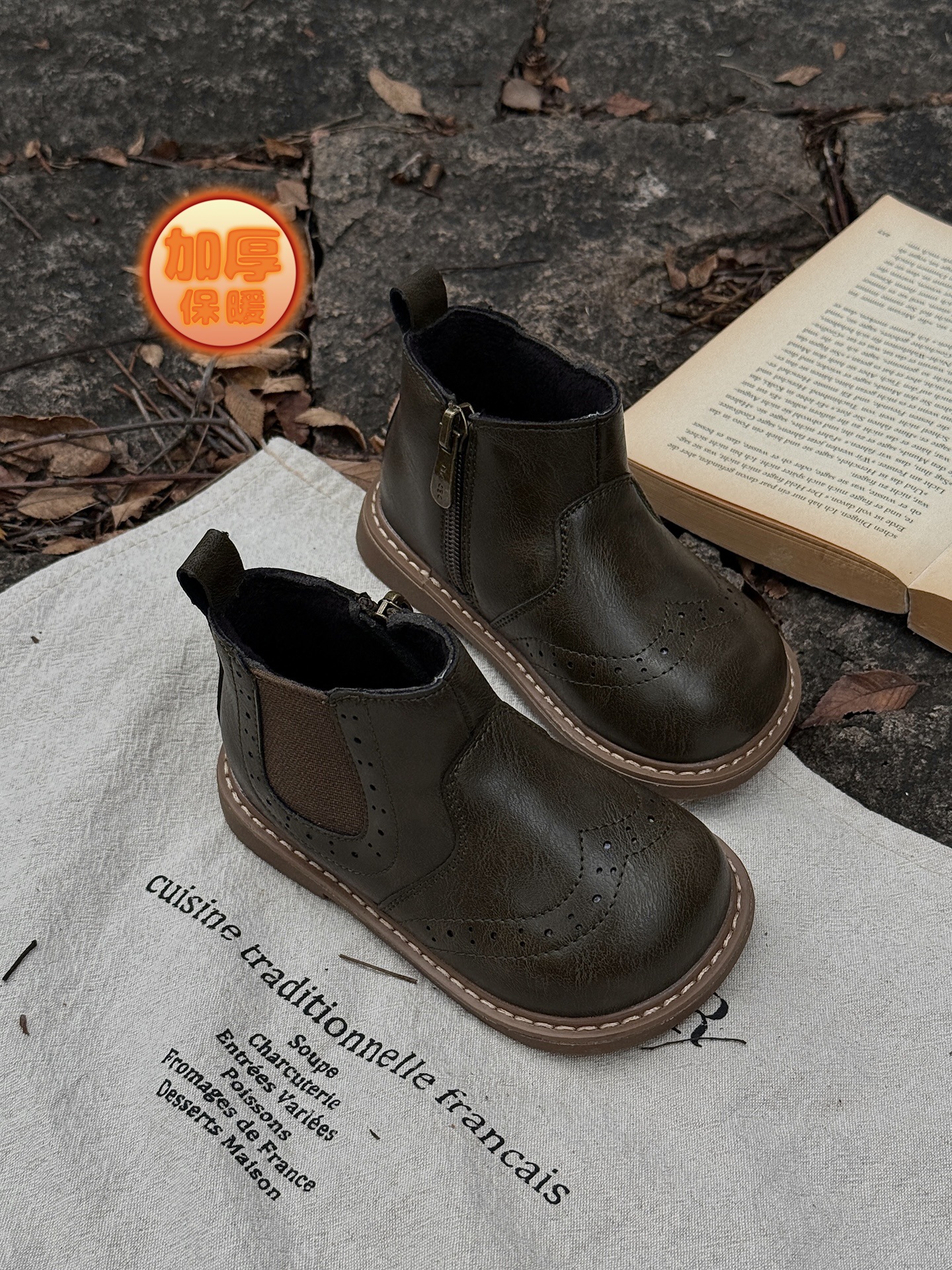 XSHX "London Brogue" 남아 및 여아용 아동용 마틴 가죽 부츠 사이드 지퍼 첼시 부츠 [Wenzhou Shoes]