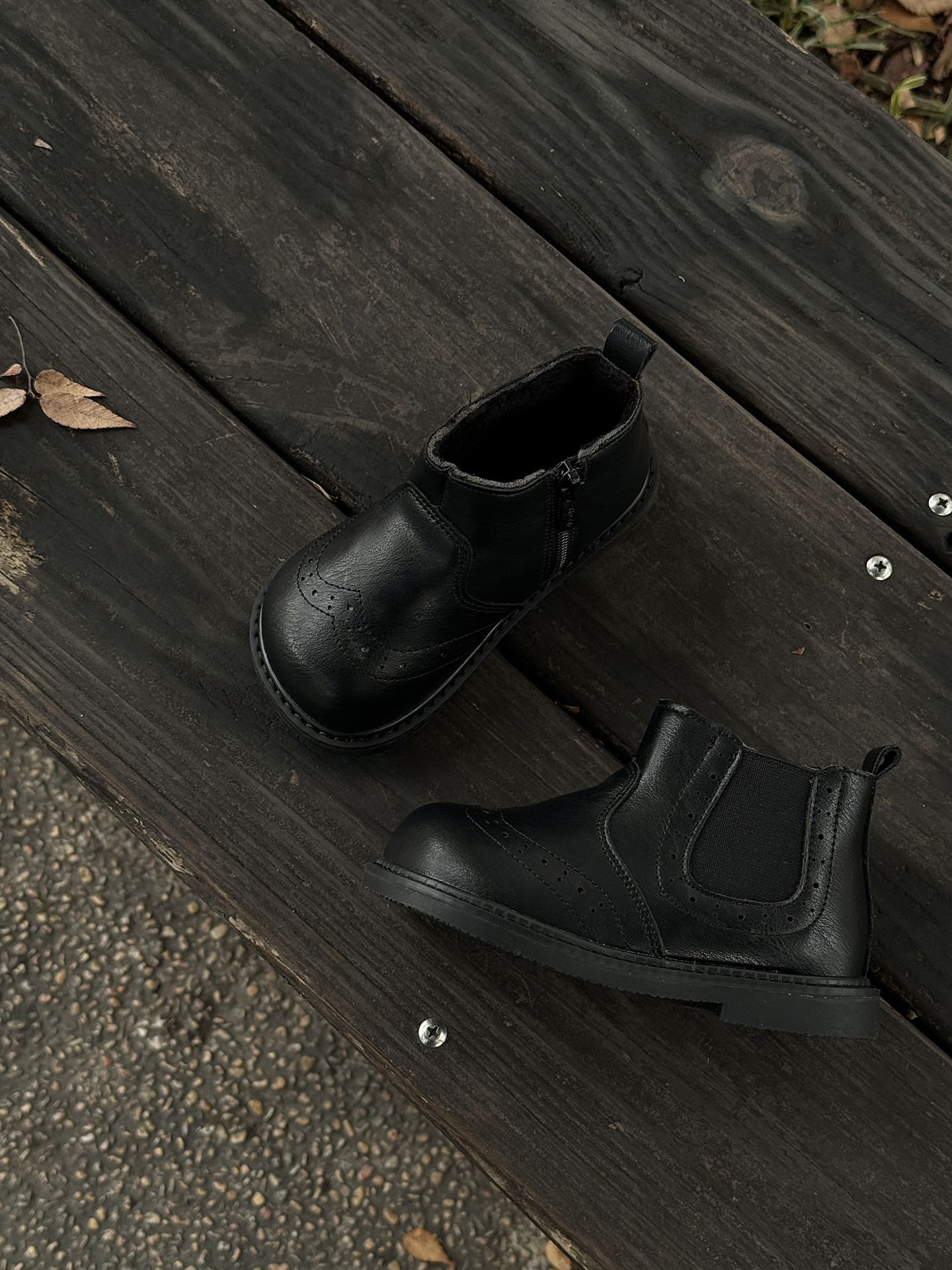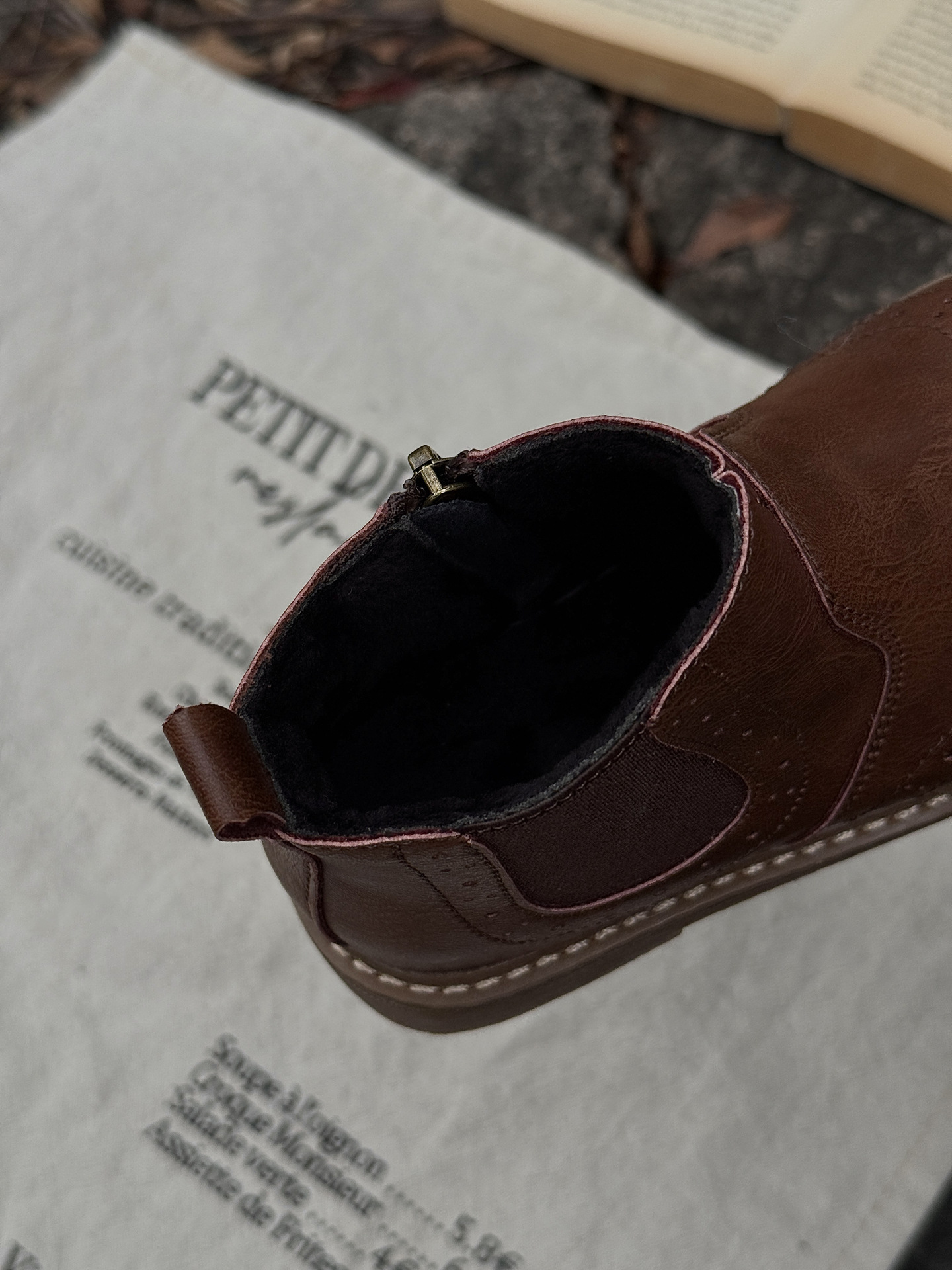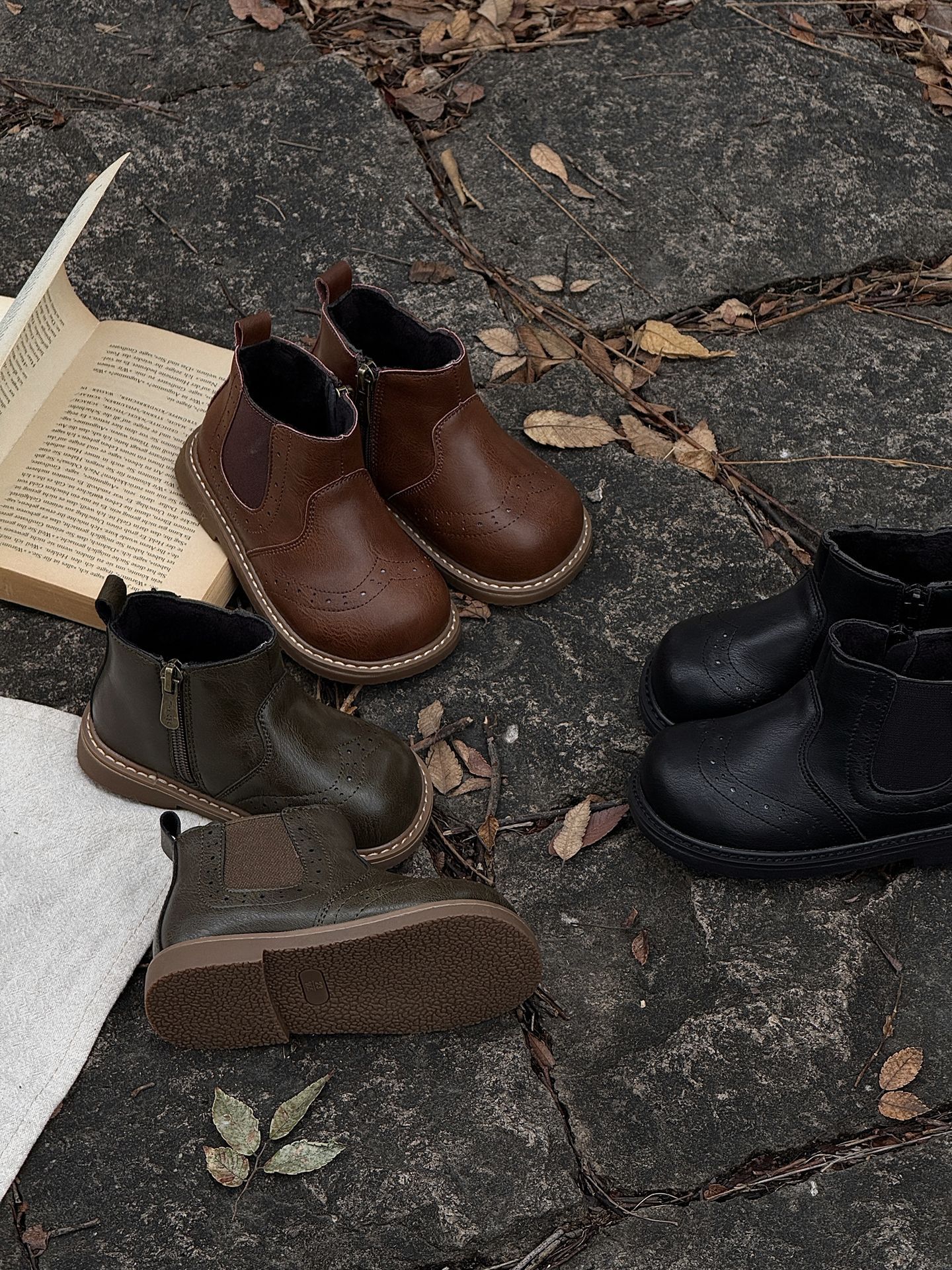 XSHX "London Brogue" 남아 및 여아용 아동용 마틴 가죽 부츠 사이드 지퍼 첼시 부츠 [Wenzhou Shoes]