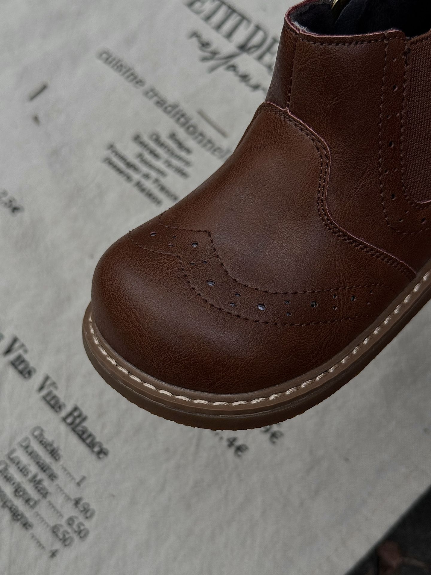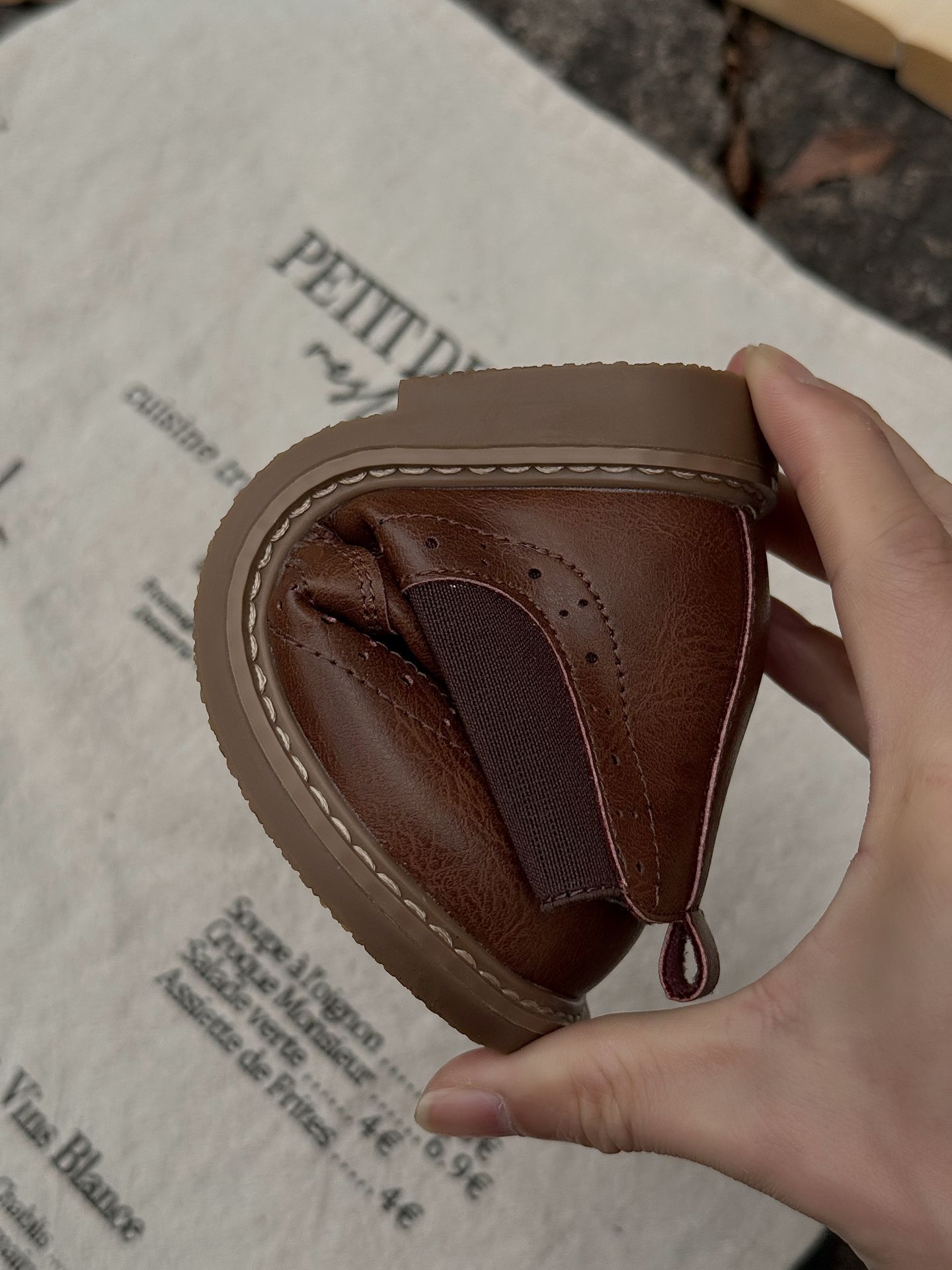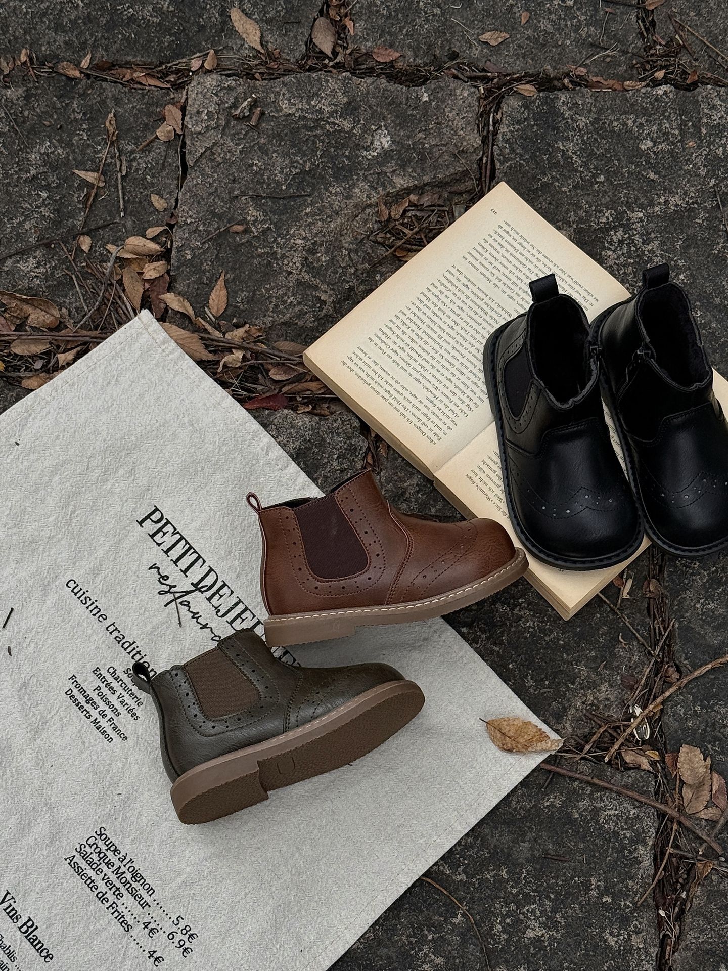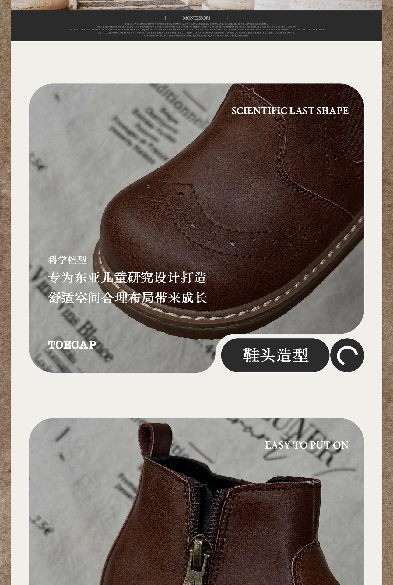 XSHX "London Brogue" 남아 및 여아용 아동용 마틴 가죽 부츠 사이드 지퍼 첼시 부츠 [Wenzhou Shoes]