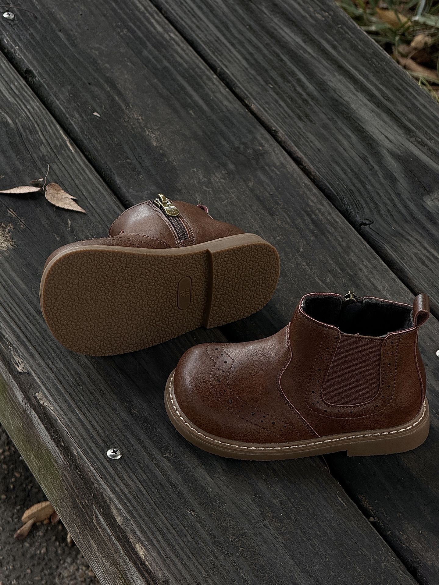 XSHX "London Brogue" 남아 및 여아용 아동용 마틴 가죽 부츠 사이드 지퍼 첼시 부츠 [Wenzhou Shoes]스토어 가기