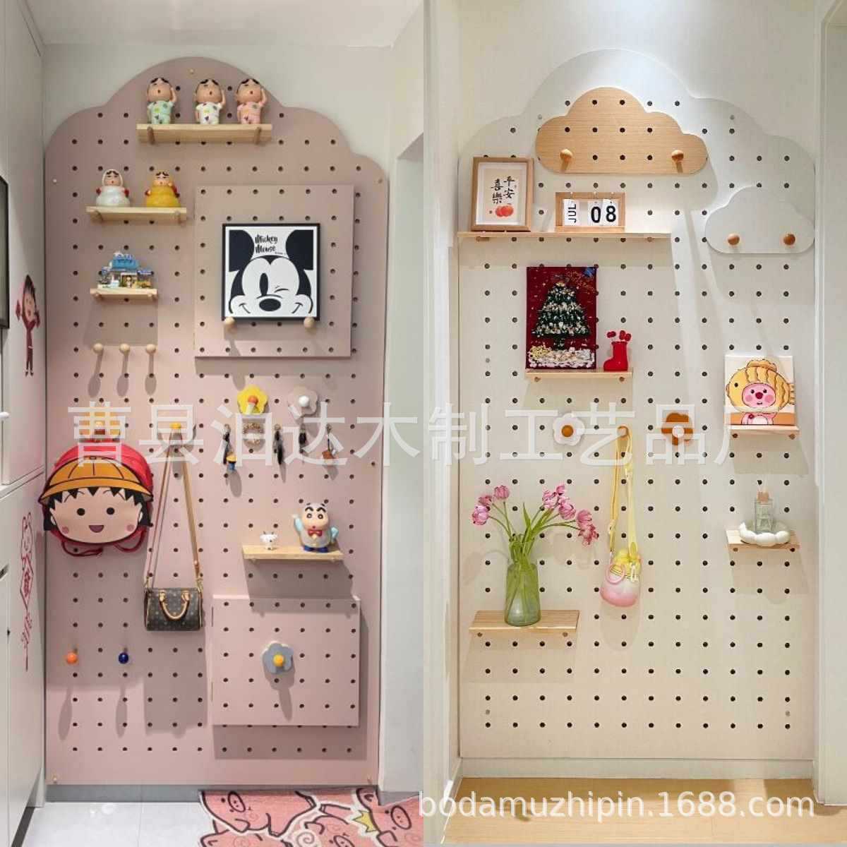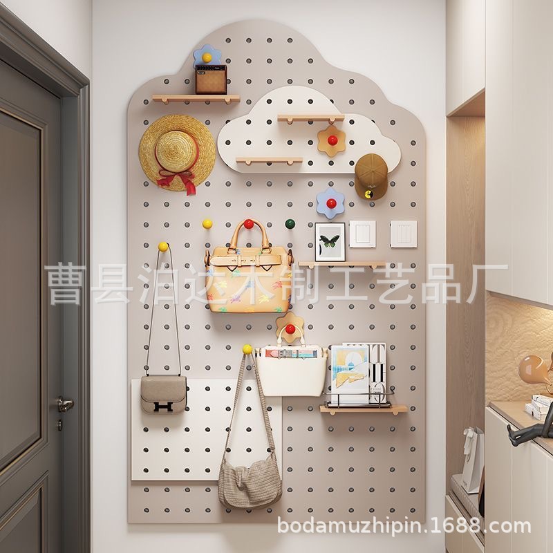 지금 만든 단단한 나무 구멍 보드 입구 벽 저장 랙 홈 파티션 저장 랙 벽 디스플레이 랙 라운드 홀스토어 가기