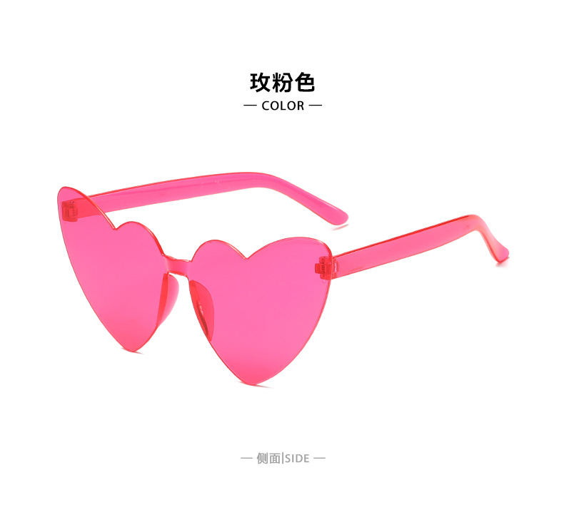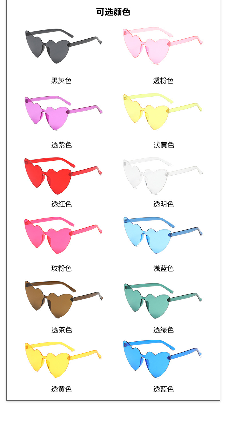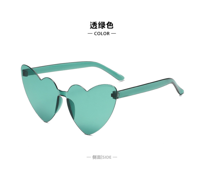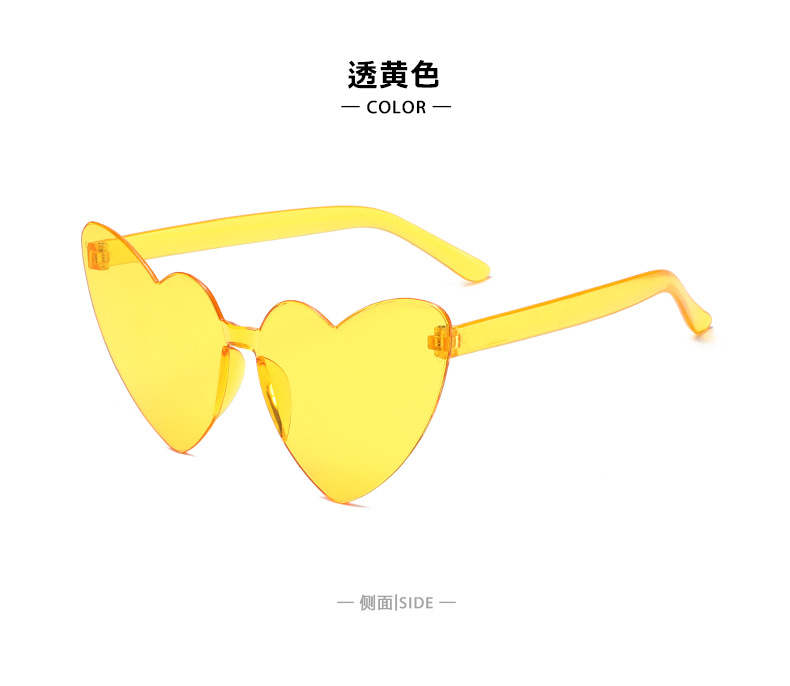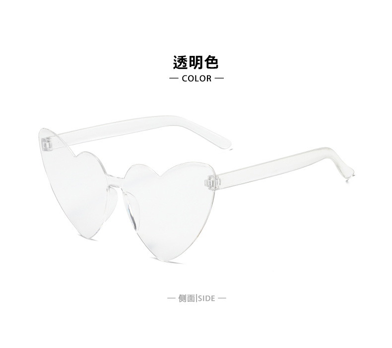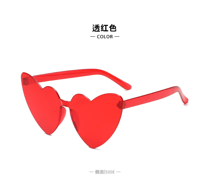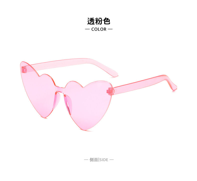 남성과 여성을 위한 투명 젤리 컬러 러브 선글라스, 복숭아 하트 선글라스, 유럽과 미국의 하트 모양의 원피스 선글라스